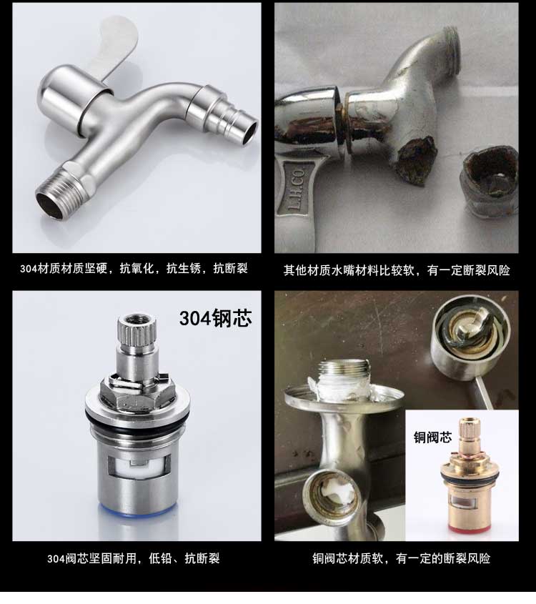 ✅304 스테인레스 스틸 세탁기 수도꼭지 가정용 작은 물 노즐 밸브 걸레 풀 4 포인트 긴 빠른 드래곤스토어 가기