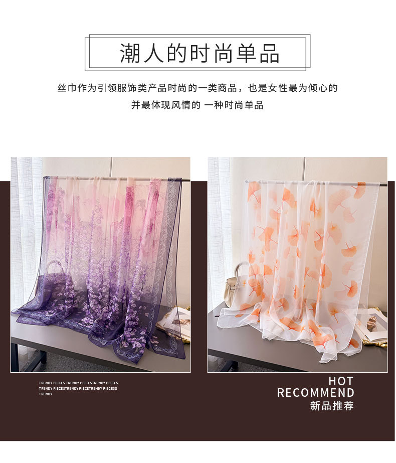 보라색 꽃 음악 암호화 된 부드러운 거즈 인쇄 봄과 여름 실크 스카프 대형 긴 스카프 여행 목도리 태양 보호 여성 스카프 머리 스카프