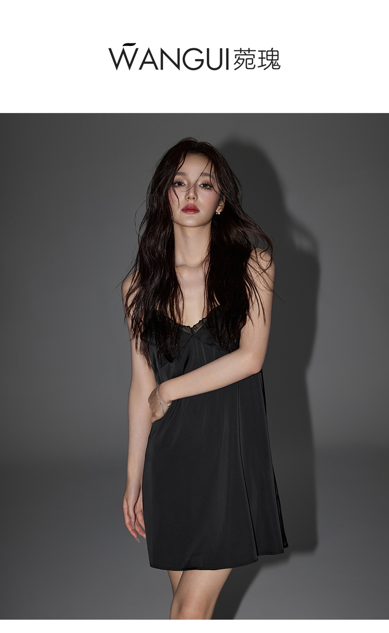 공장 직접 판매 2025 새로운 스타일 서스펜더 잠옷, 여성스러운 시뮬레이션 리본 가슴 패드, 짧은 스타일, 고급 감각, 처리 지원