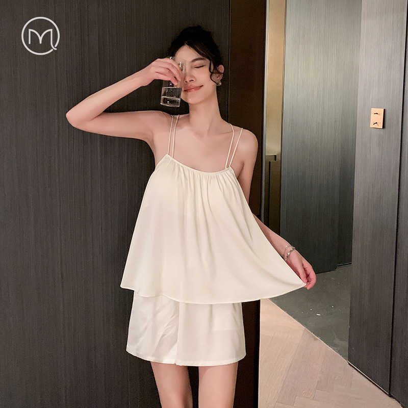 공장 직접 판매 2025 새로운 스타일 서스펜더 잠옷, 여성스러운 시뮬레이션 리본 가슴 패드, 짧은 스타일, 고급 감각, 처리 지원스토어 가기