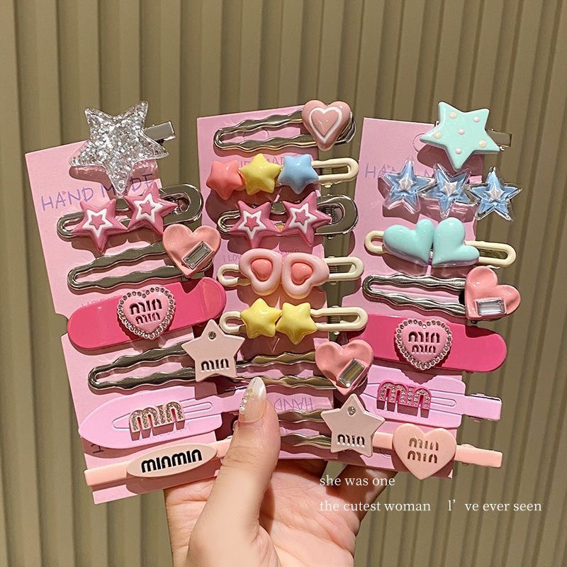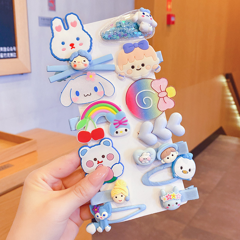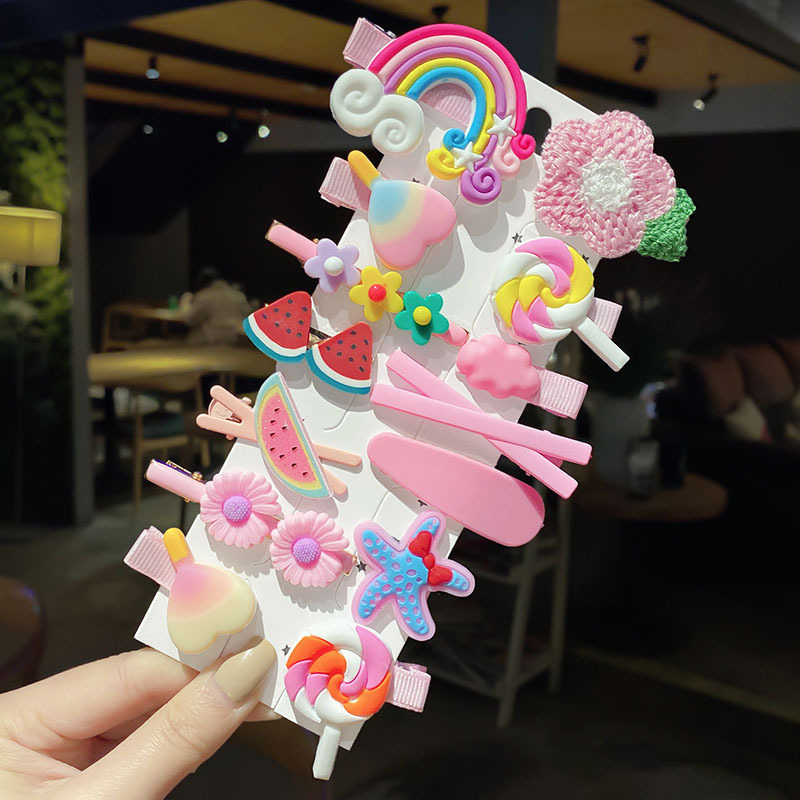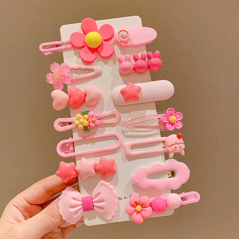 새로운 14 피스 세트 어린이 머리핀 소녀 머리핀 사이드 클립 귀여운 아기 앞머리 클립 깨진 머리 꽃 클립 도매