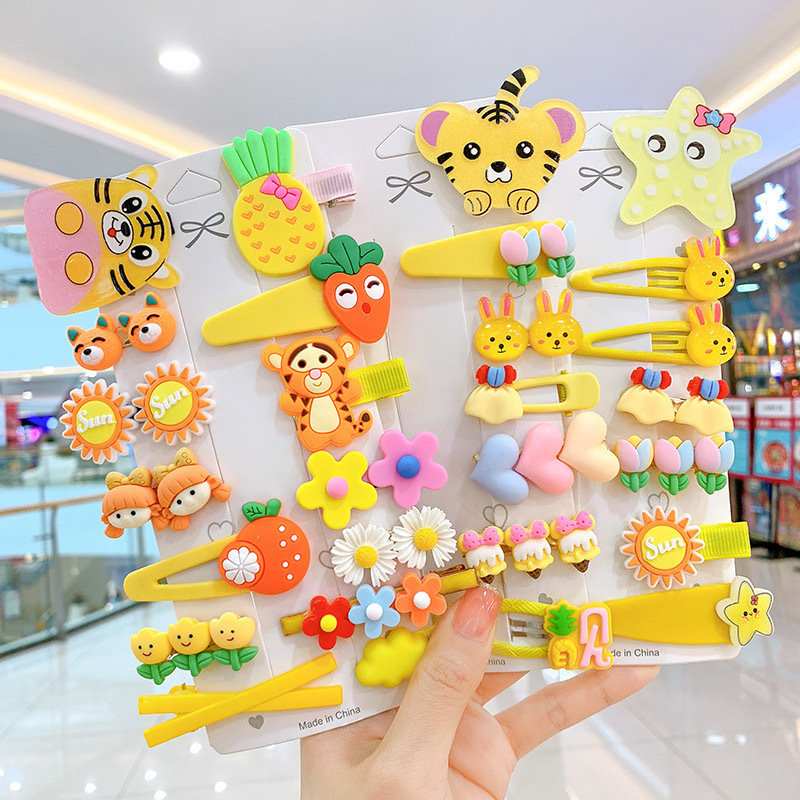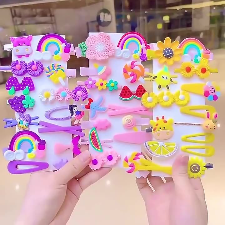 새로운 14 피스 세트 어린이 머리핀 소녀 머리핀 사이드 클립 귀여운 아기 앞머리 클립 깨진 머리 꽃 클립 도매스토어 가기