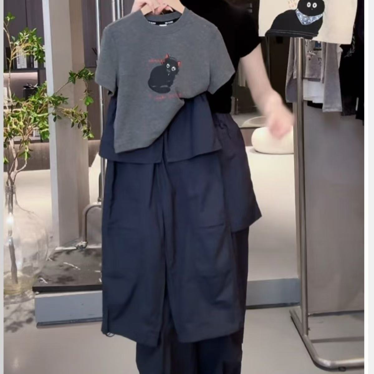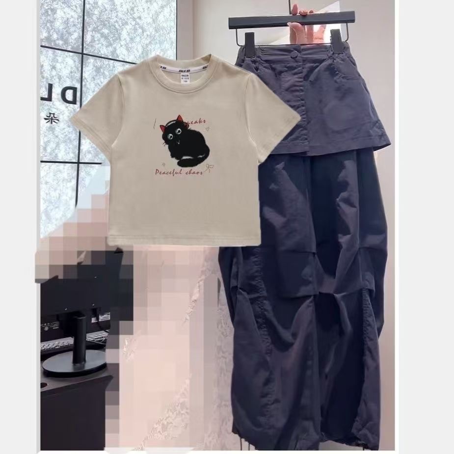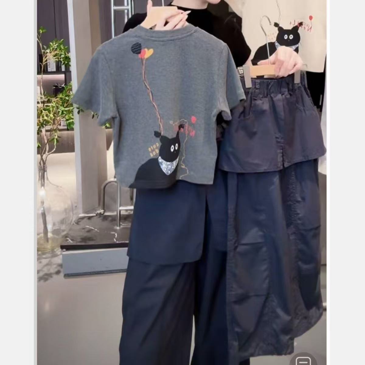 여자 2025 년 여름 세트 어린이 한국식 반팔 새 코일 캐주얼 바지 스커트 커튼 올매치 아동복 바지스토어 가기