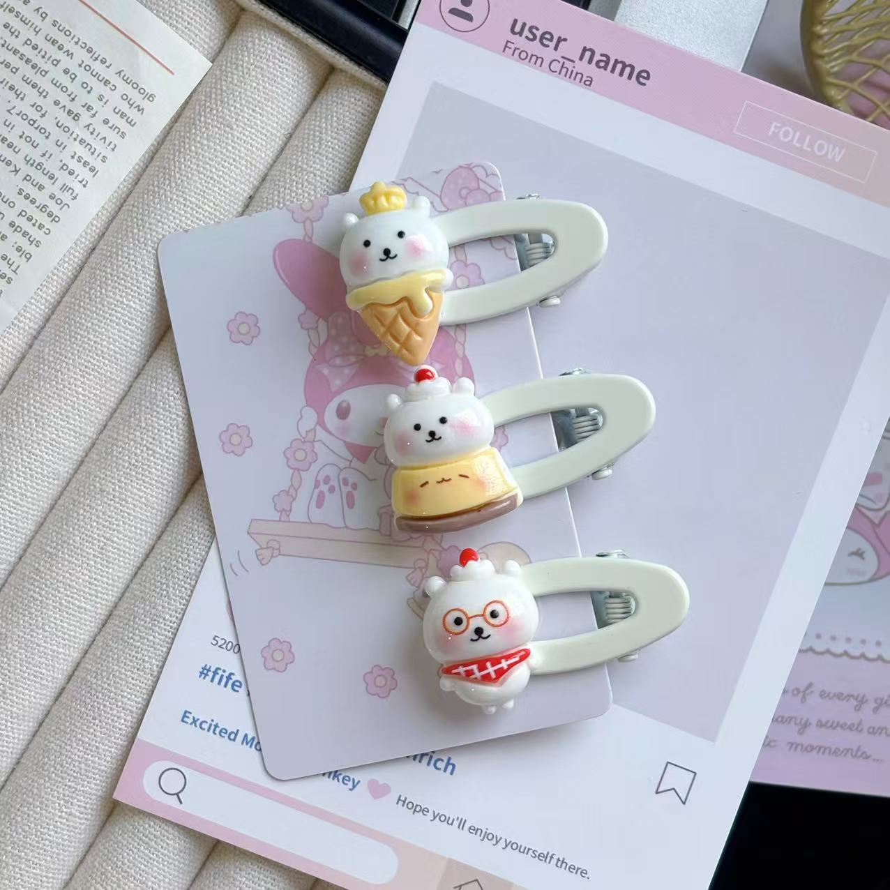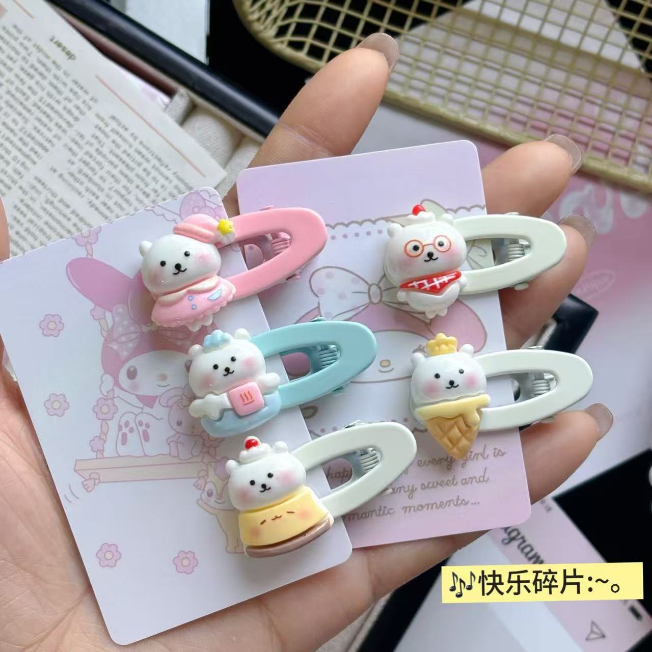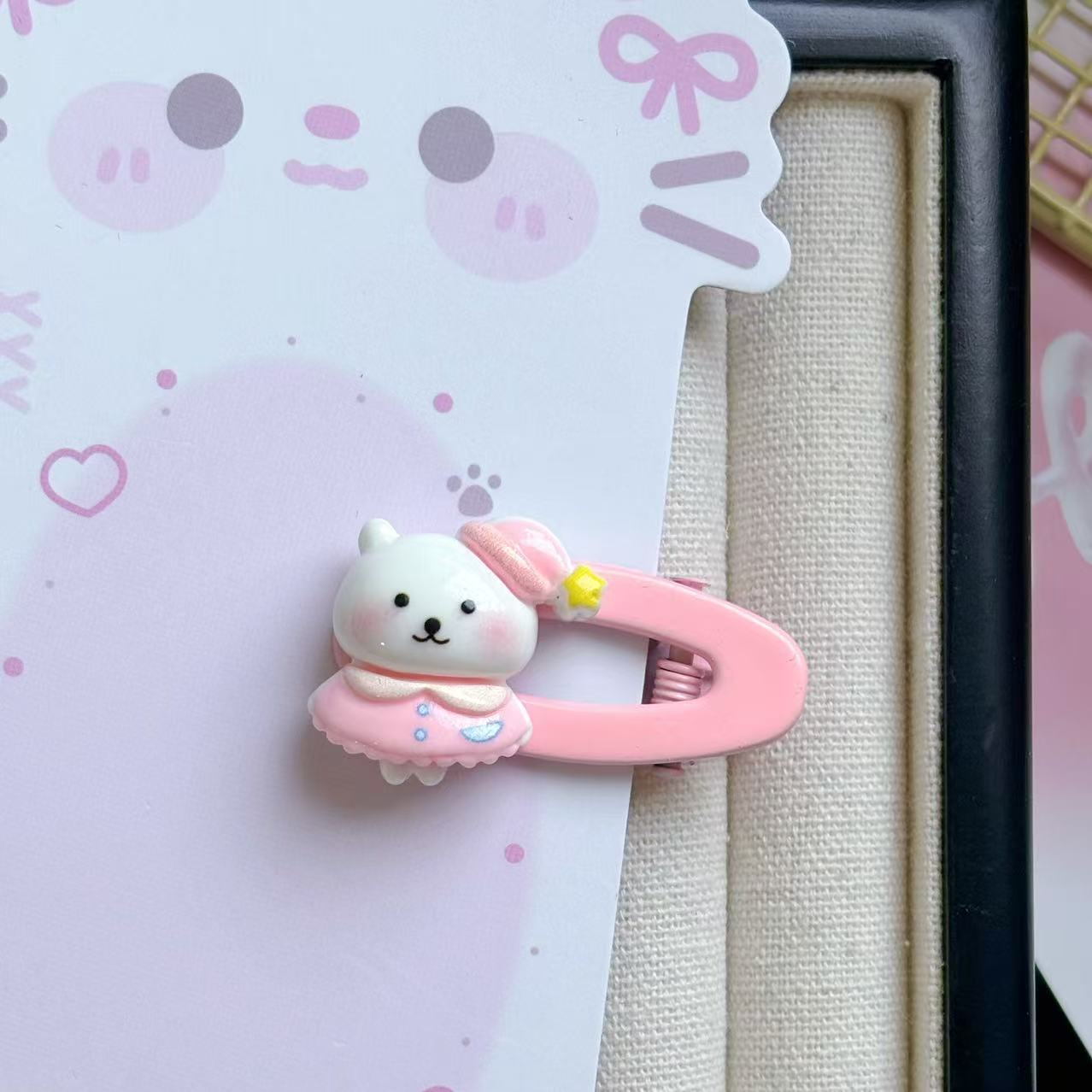 만화 귀여운 새로운 자기 조롱 곰 타원형 머리핀 소녀 앞머리 머리핀 핑크 머리 장식 헤어 액세서리 클립 측면스토어 가기