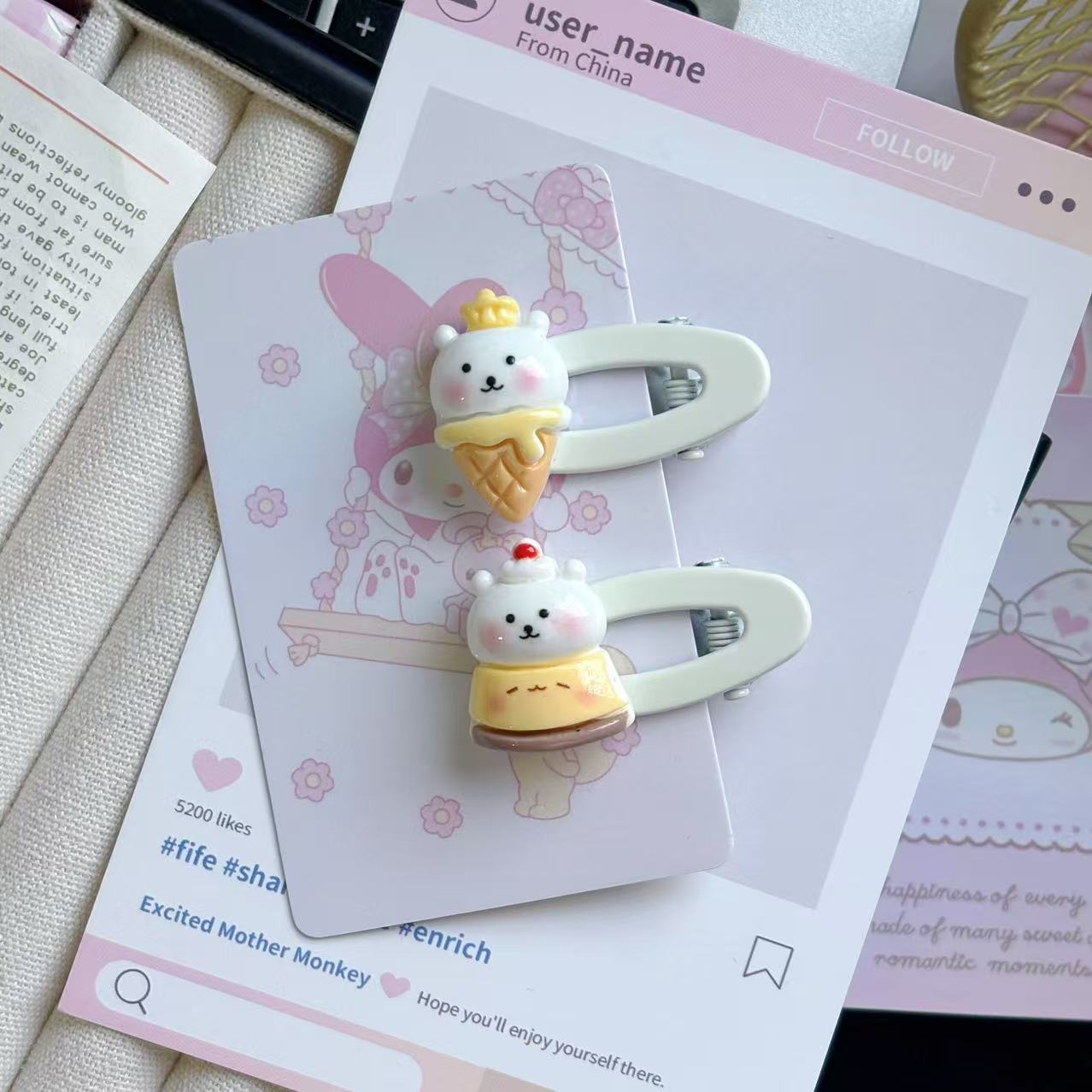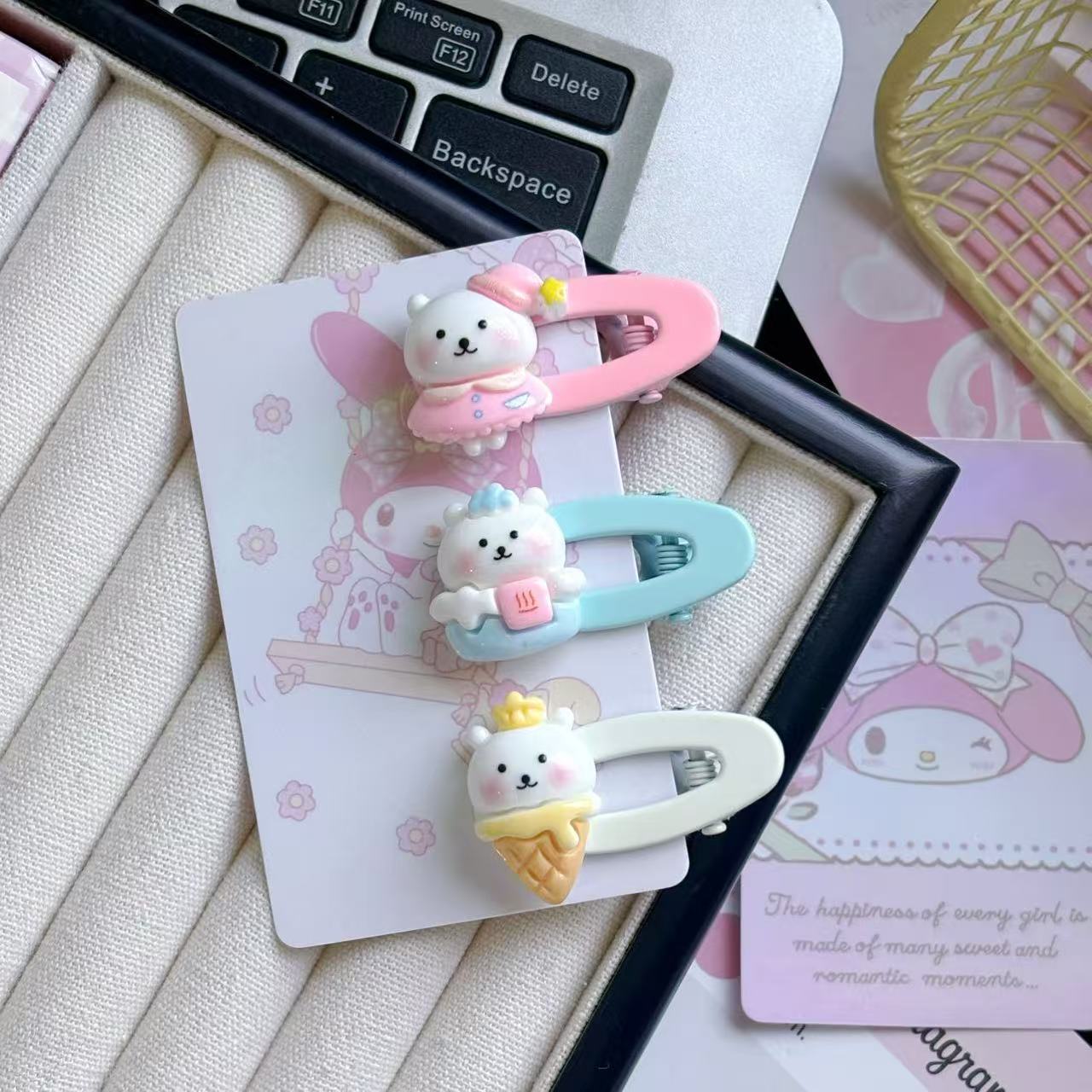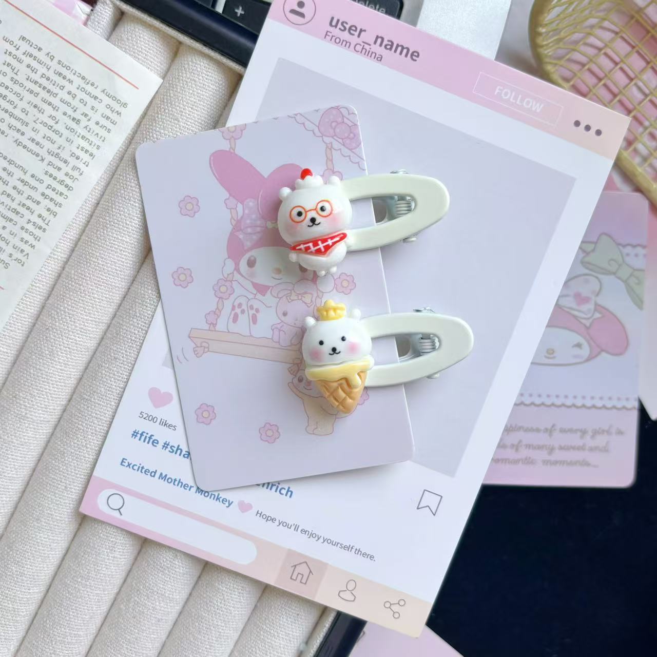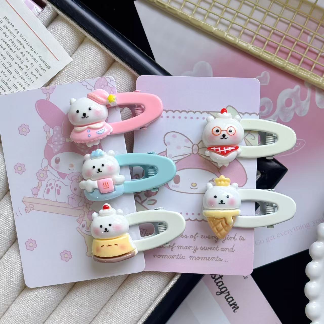만화 귀여운 새로운 자기 조롱 곰 타원형 머리핀 소녀 앞머리 머리핀 핑크 머리 장식 헤어 액세서리 클립 측면스토어 가기