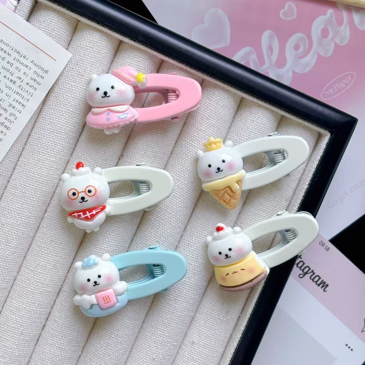 만화 귀여운 새로운 자기 조롱 곰 타원형 머리핀 소녀 앞머리 머리핀 핑크 머리 장식 헤어 액세서리 클립 측면