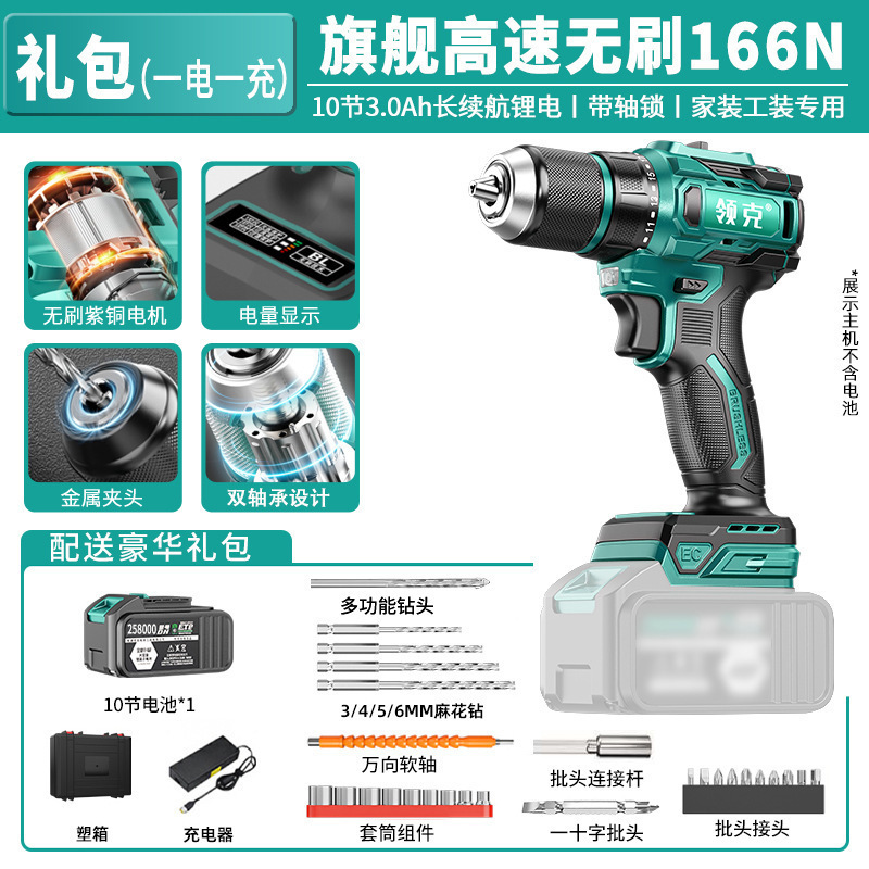 • 166N(샤프트 잠금 래칫 스틸 척) 10개 섹션 3.0Ah 전기 플라스틱 상자 1개 + 선물 가방