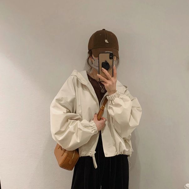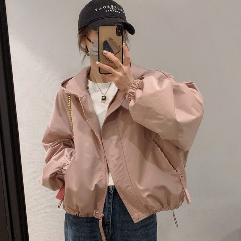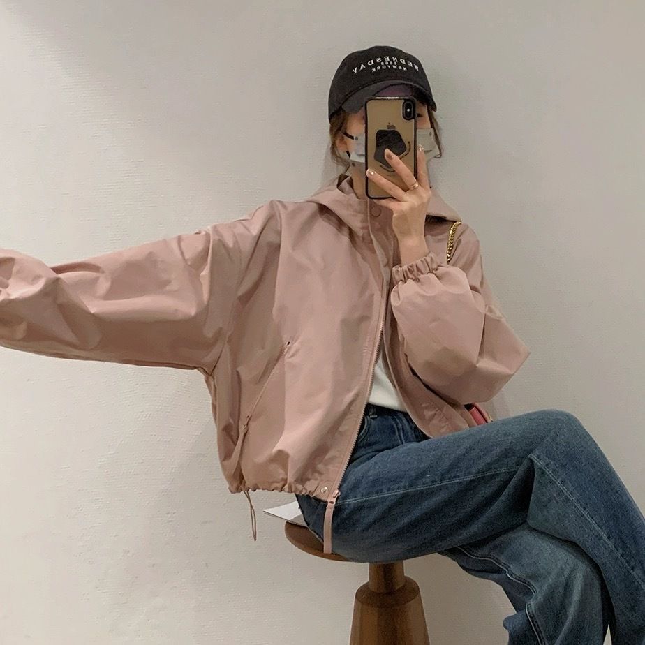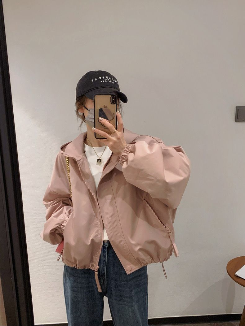 후드 자켓 여성 봄, 가을 새로운 한국 스타일 짧은 재킷 세련되고 다재다능한 캐주얼 루즈 짧은 재킷 유행