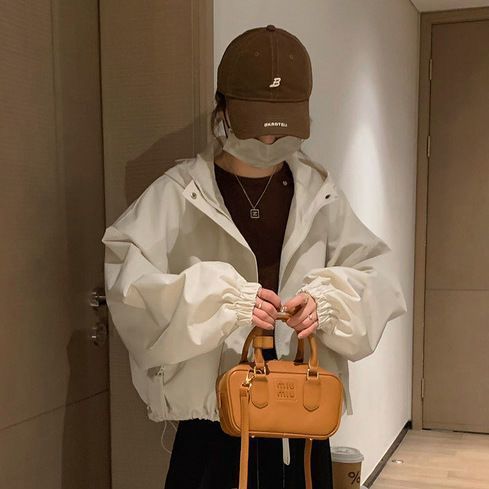 후드 자켓 여성 봄, 가을 새로운 한국 스타일 짧은 재킷 세련되고 다재다능한 캐주얼 루즈 짧은 재킷 유행스토어 가기