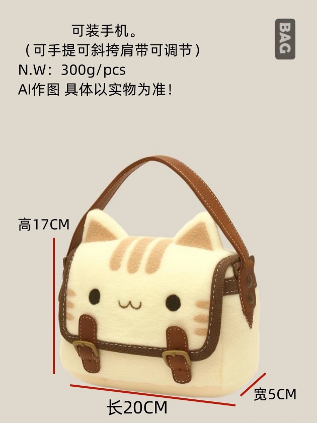 귀여운 고양이 봉제 작은 가방 여성의 2024 새로운 온라인 인기 높은 가치 만화 마오 인형 클러치 가방 여성용 가방스토어 가기