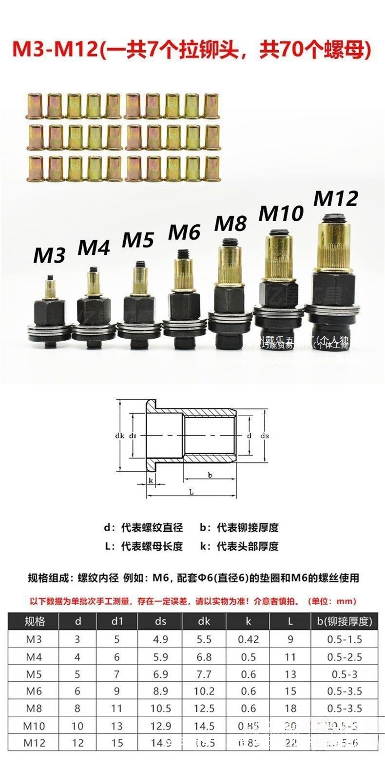 공장 도구 간단한 가정용 수동 리벳 철판 번호판 플랫 헤드 풀 리벳 너트 자동차 풀 여성 헤드 풀 리벳 나사스토어 가기