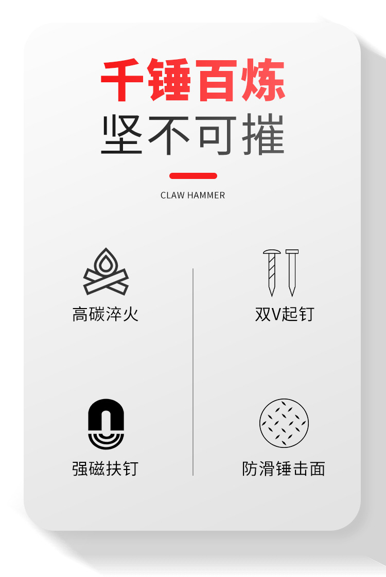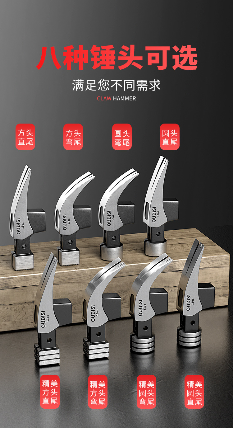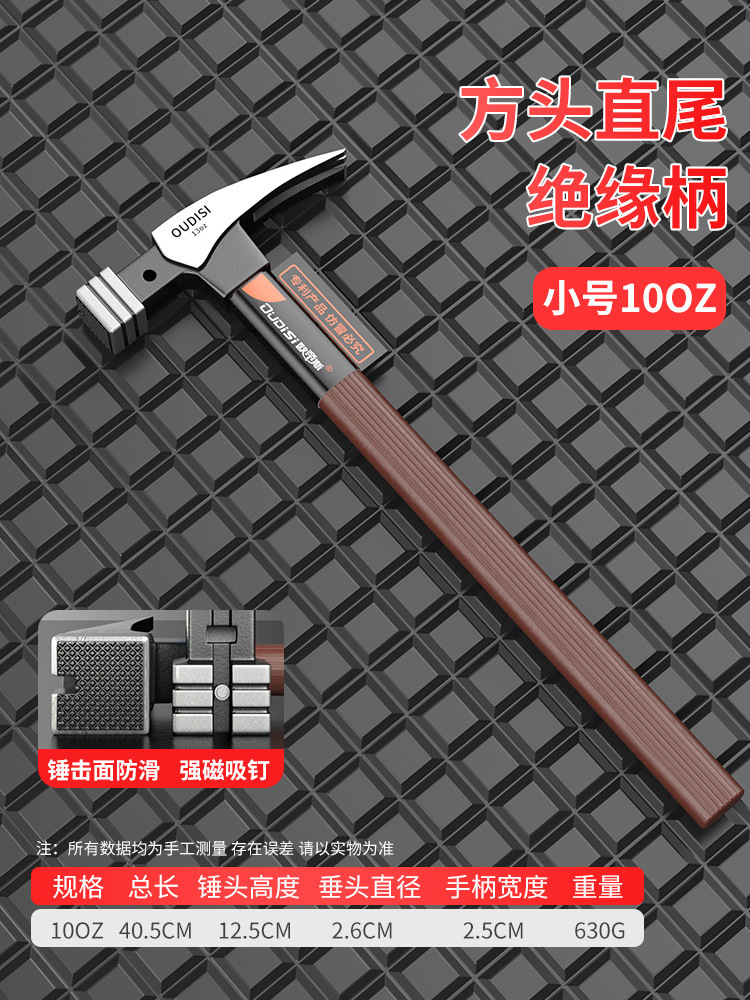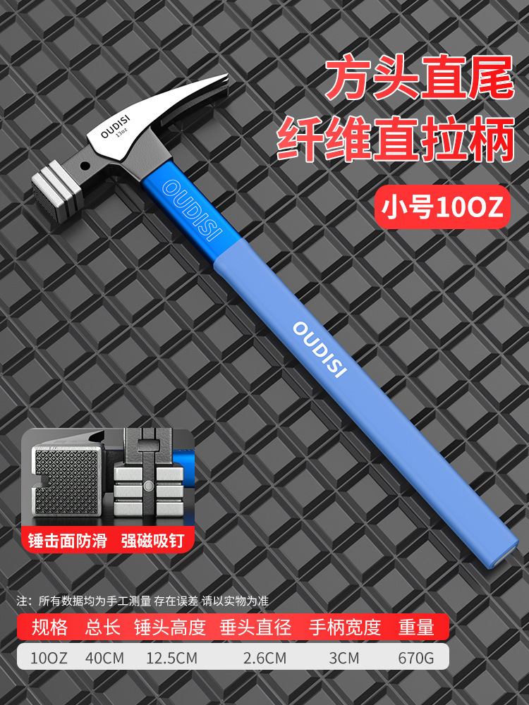 • 10OZ 미국식 직선 당김 핸들 각진 둥근 머리 클로 해머