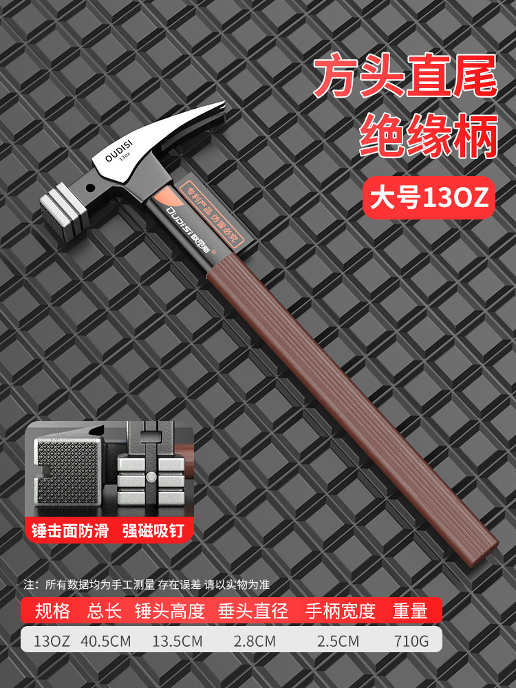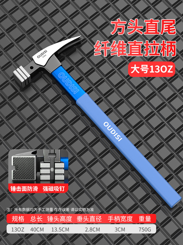 • 13OZ 아메리칸 스트레이트 풀 핸들 직각 사각 헤드 클로 해머