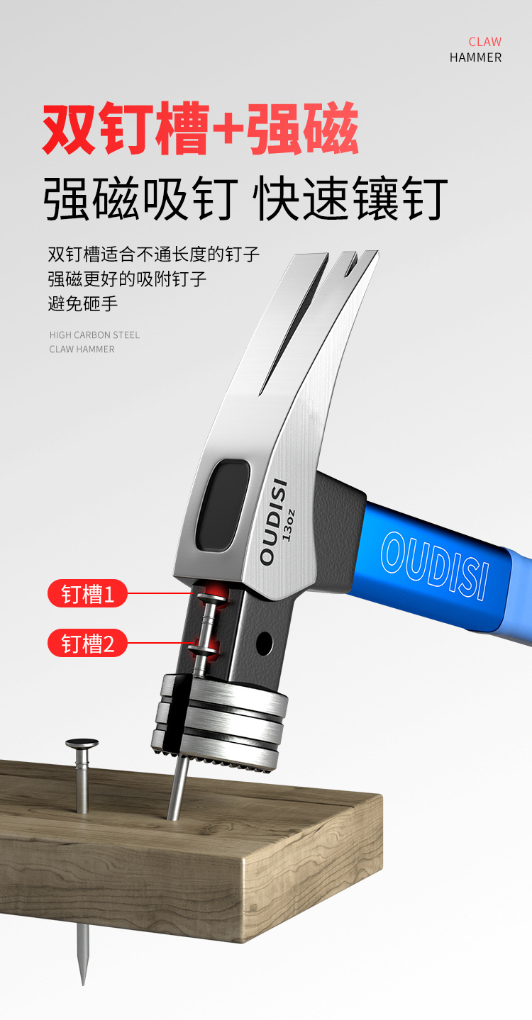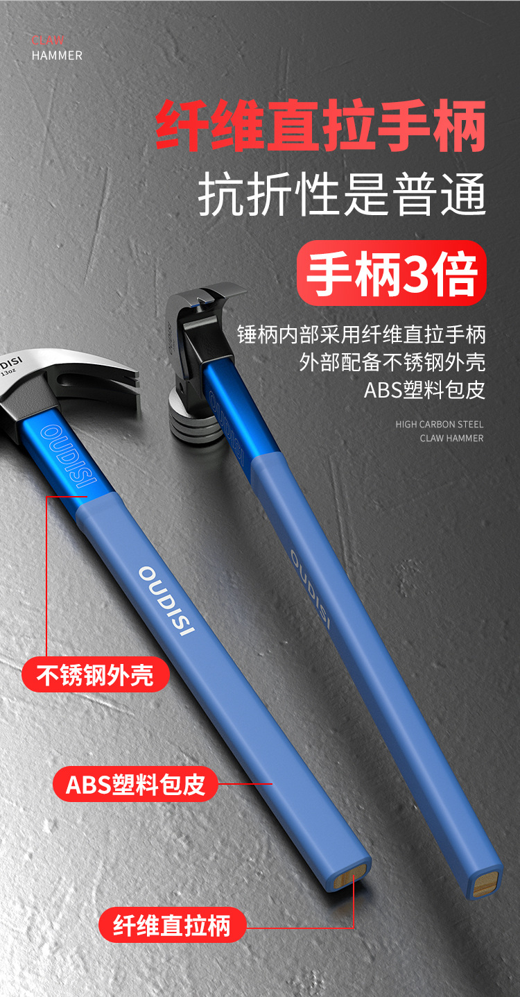 Crate Hammer 다기능 목공 섬유 손잡이 네일 해머 특수 강철 통합 해머 해머 해머 라운드 헤드 높은 탄소 강철 기타