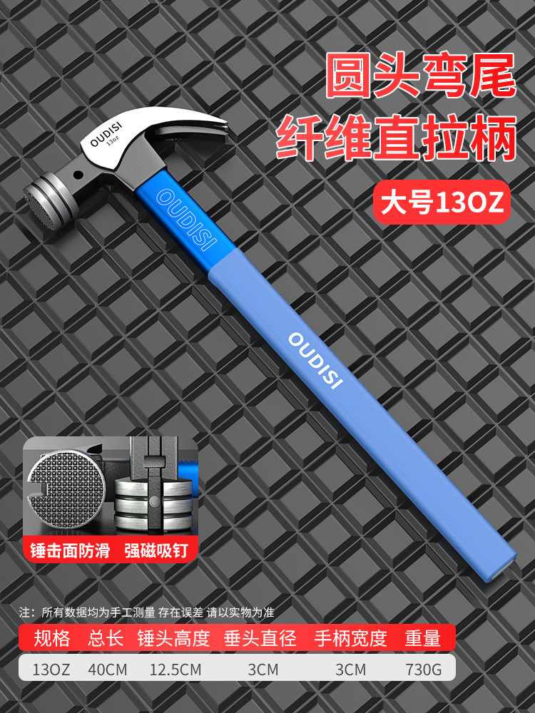 • 13OZ 아메리칸 스트레이트 풀 핸들 각진 라운드 헤드 클로 해머