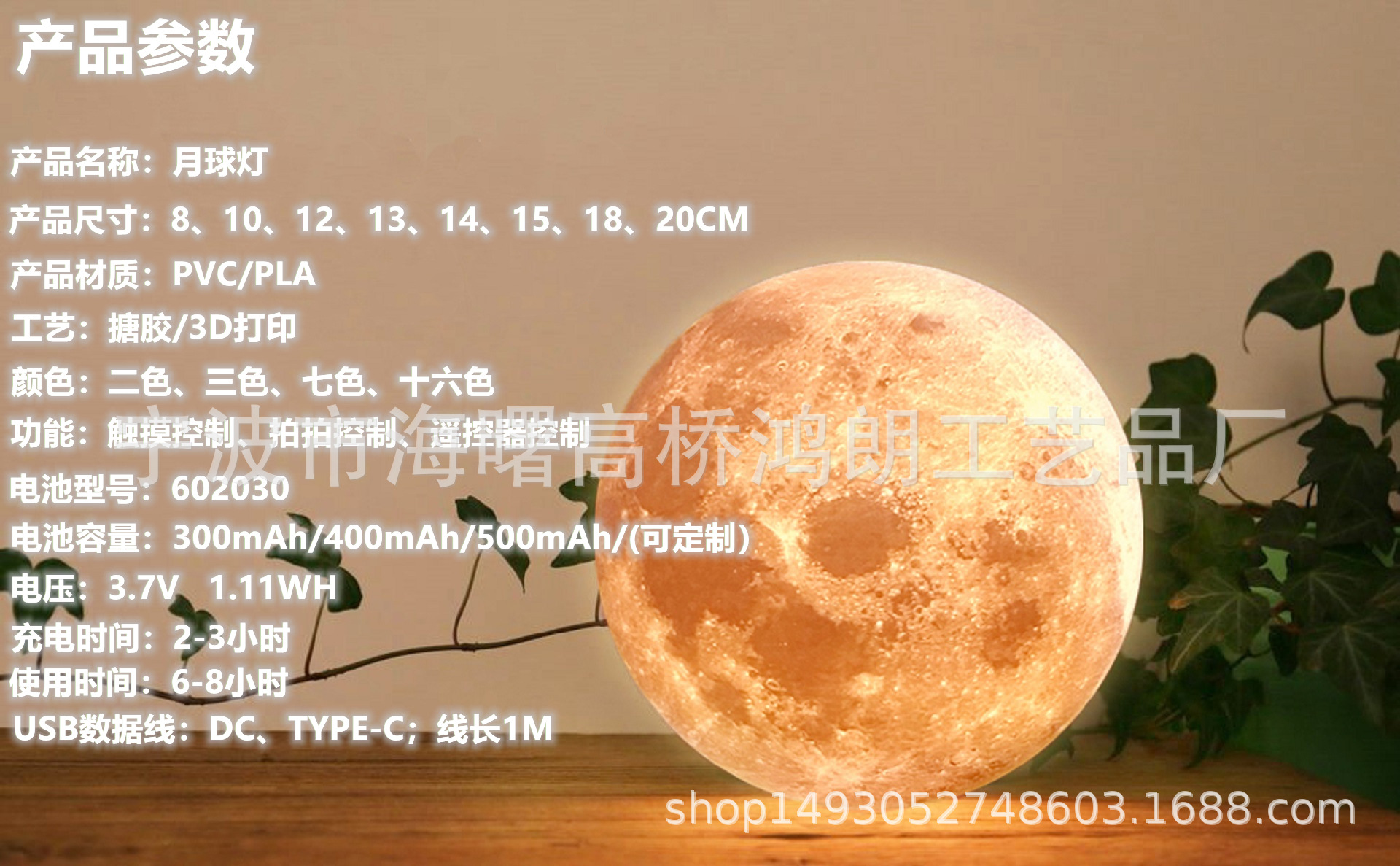 아마존의 인기 있는 달 램프 USB 충전식 달 램프 다채로운 터치 LED 침대 옆 테이블 램프 센서 램프 발렌타인 데이
