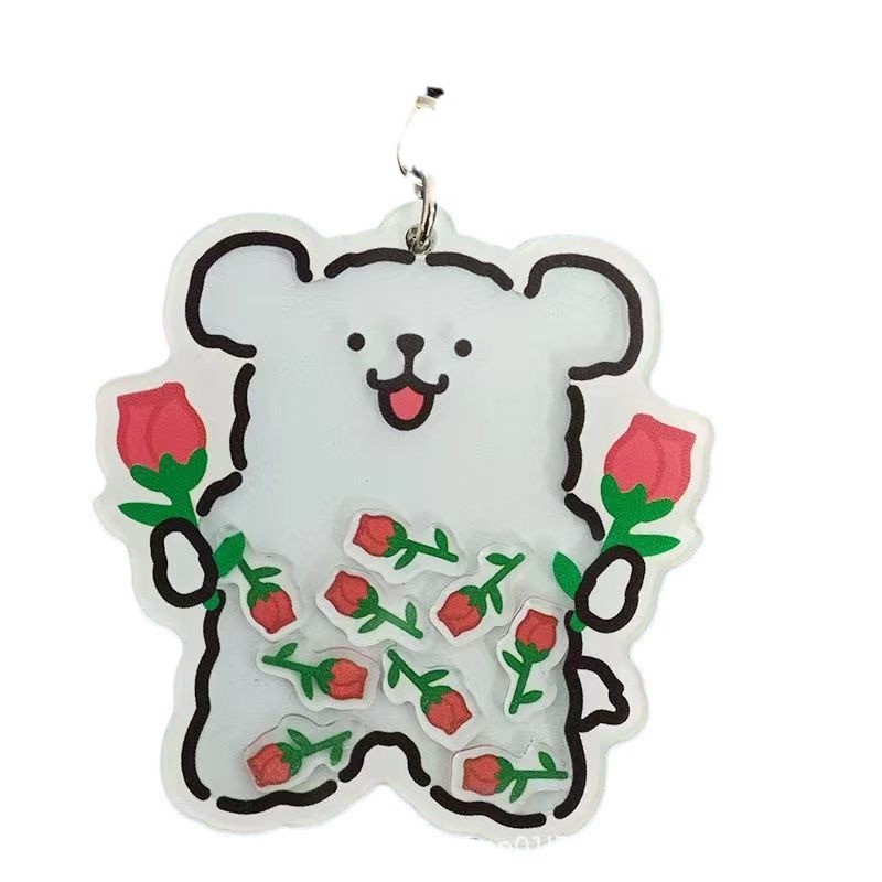 귀여운 강아지 로즈 배드민턴 펜던트 탁구 가방 학생 키 체인 악수 음악스토어 가기