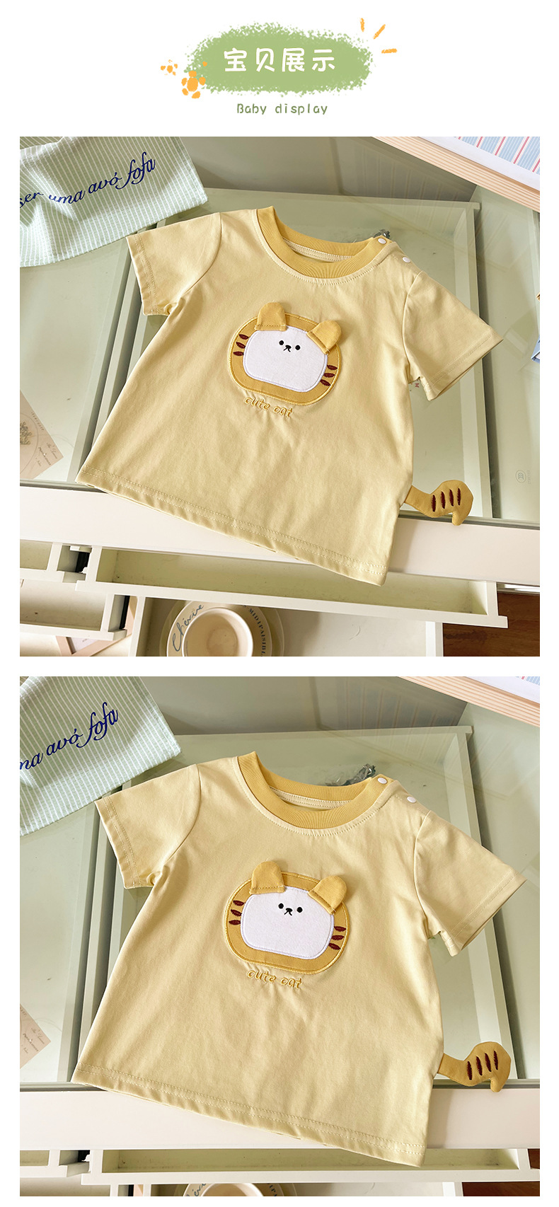 [재고] 아동용 반팔 2025 여름 신작 한국식 귀여운 호랑이 패치 디자인 경량 티셔츠스토어 가기
