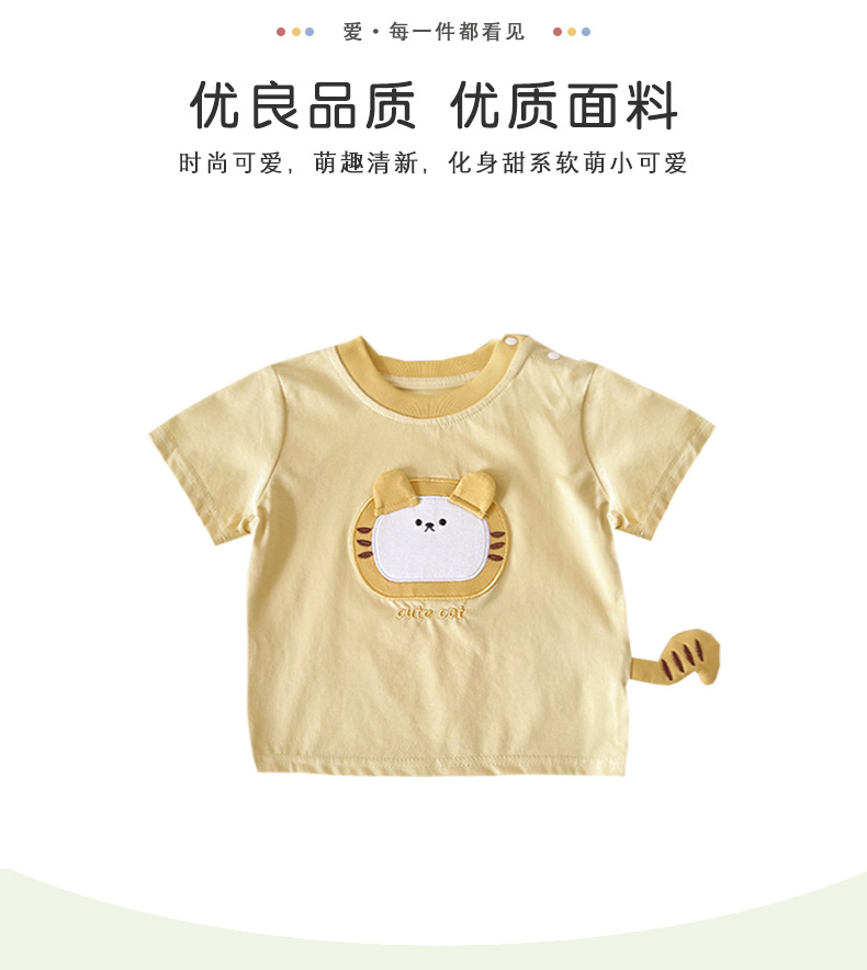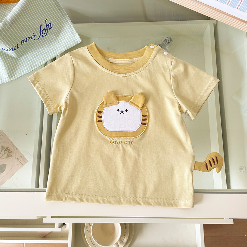 [재고] 아동용 반팔 2025 여름 신작 한국식 귀여운 호랑이 패치 디자인 경량 티셔츠