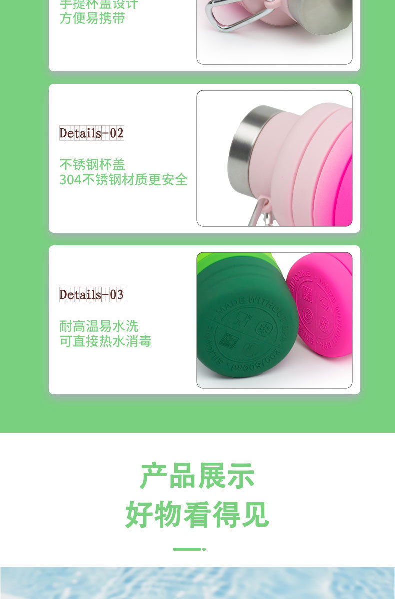 도매 휴대용 실리콘 접이식 물병 접이식 컵 대용량 실리콘 물병 야외 여행용 실리콘 스포츠 물병스토어 가기