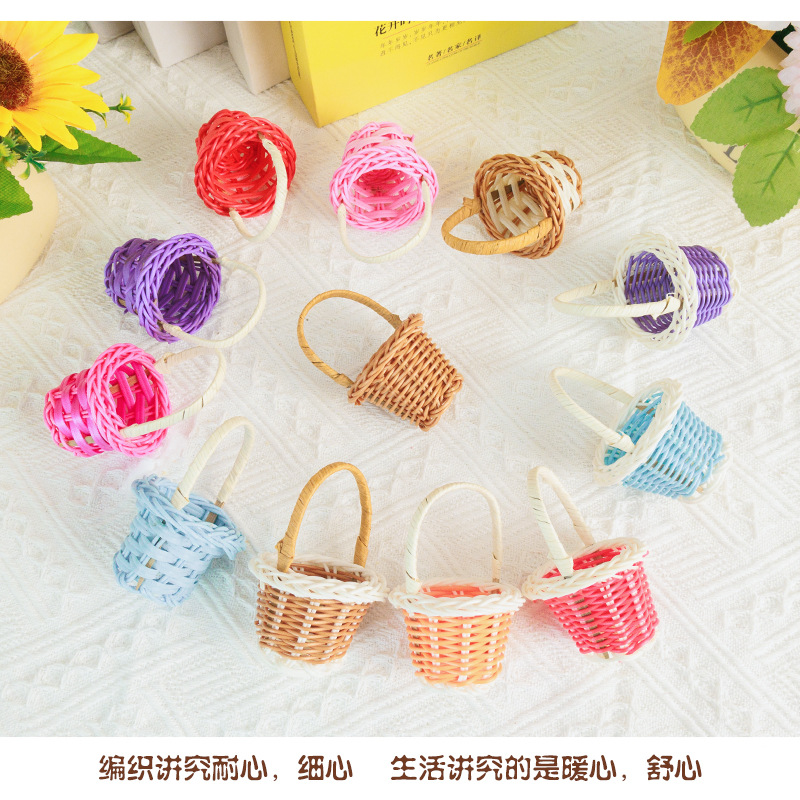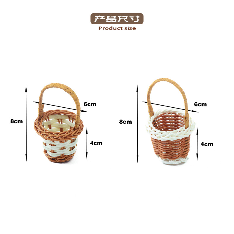 인형 집 미니 등나무 토트 바구니 놀이 집 장난감 장면 장식품 손으로 짠 촬영 소품 꽃 바구니