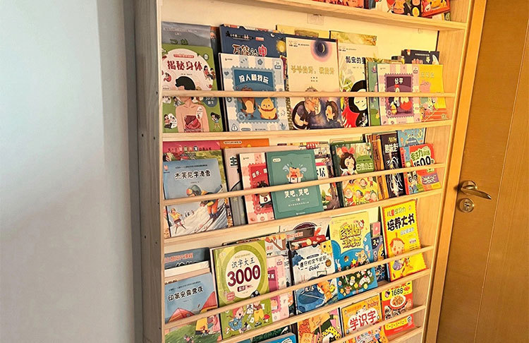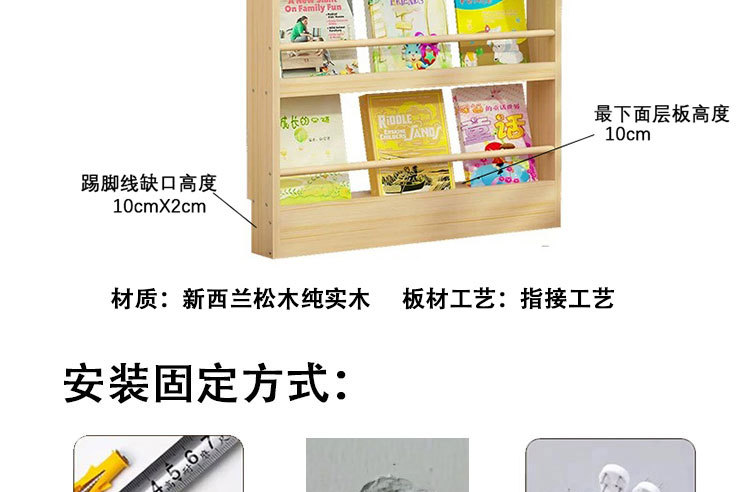 책장 보관 랙 솔리드 우드 어린이 랙 그림책 랙 도어 후면 초박형 다층 도어 뒷구멍 없는 벽 교수형 좁은 저장 캐비닛