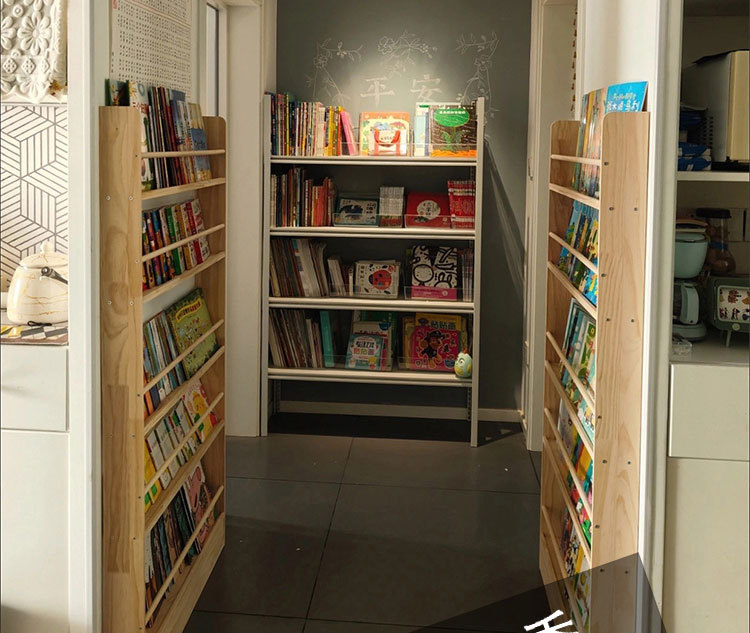 책장 보관 랙 솔리드 우드 어린이 랙 그림책 랙 도어 후면 초박형 다층 도어 뒷구멍 없는 벽 교수형 좁은 저장 캐비닛스토어 가기