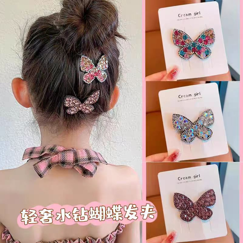 어린이 나비 머리핀 2025 새로운 스타일 깨진 머리핀 머리 머리 소녀 뱅 헤드셋 헤어 액세서리 소녀의 등 머리 bb 클립스토어 가기