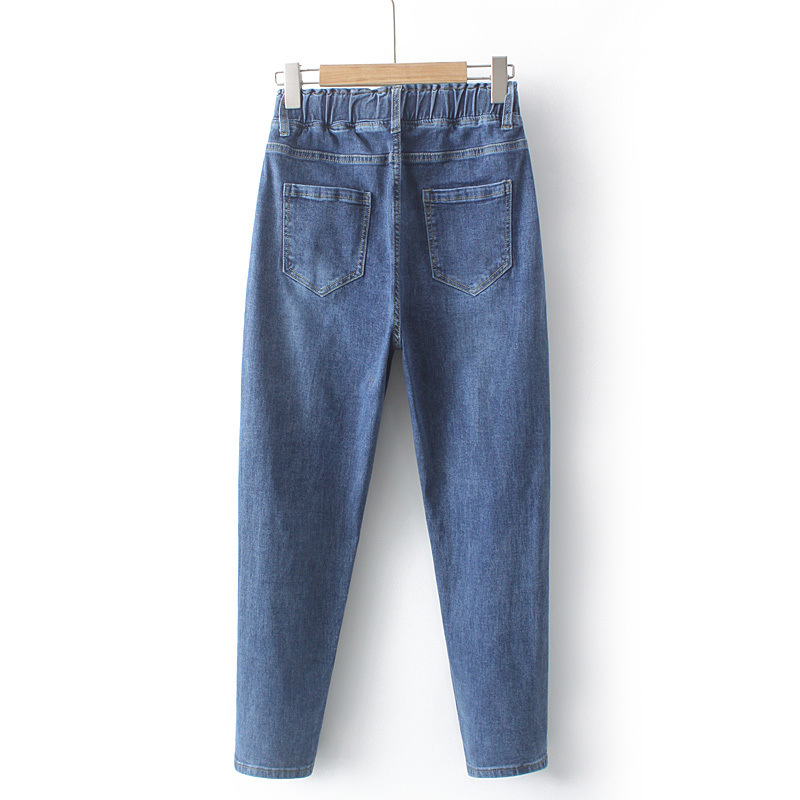 [15000] 여성용 하이 웨이스트 청바지 2025 새로운 봄과 가을 새로운 플러스 사이즈 탄성 허리 통통녀 슬림스토어 가기