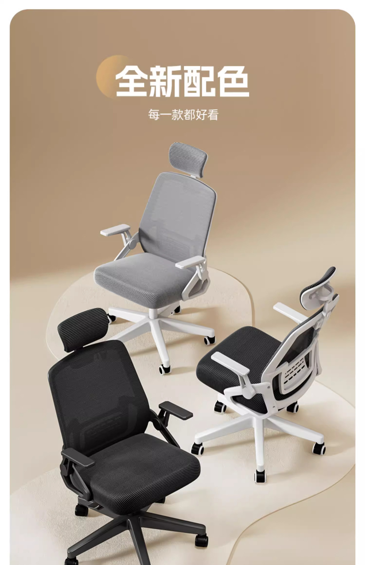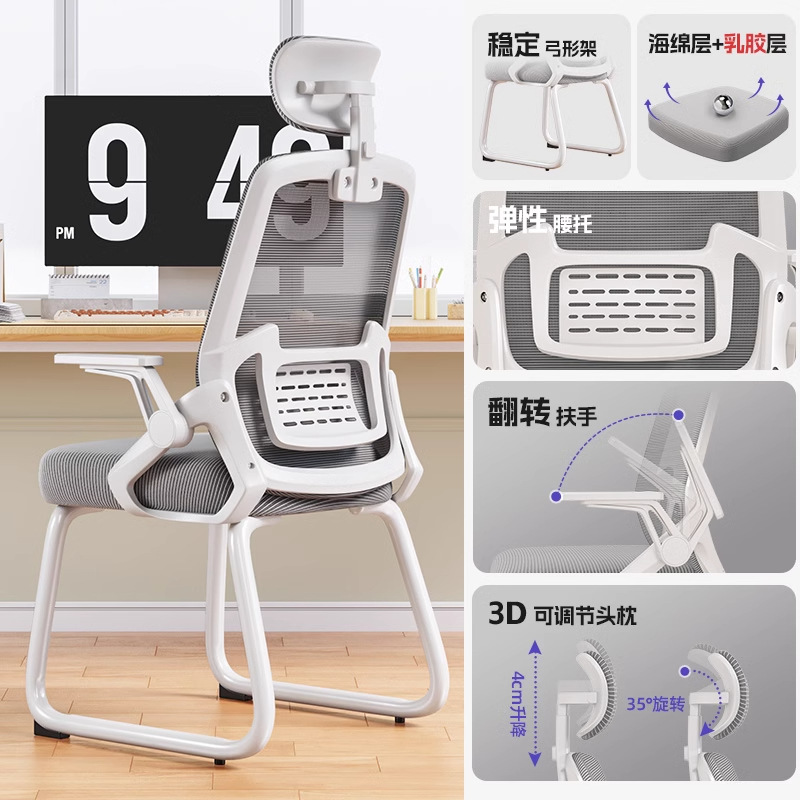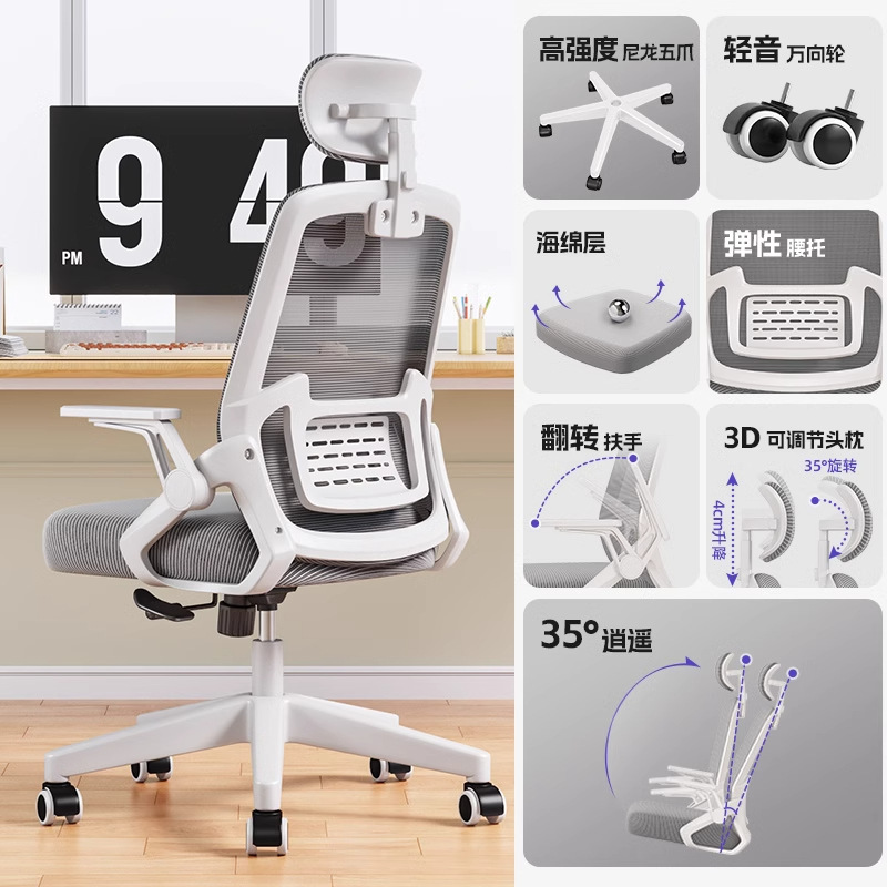 • 화이트 프레임 그레이 메쉬 - 머리받침 포함 - 넓은 허리 지지대 + 자유로운 기능丨8CM 두꺼운 스폰지 패드