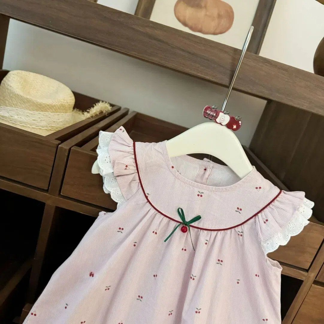 소녀 여름 핑크 벚꽃 인쇄 원피스 25 한국 스타일 비행 슬리브 레이스 공주 원피스 1 년 된 원피스스토어 가기