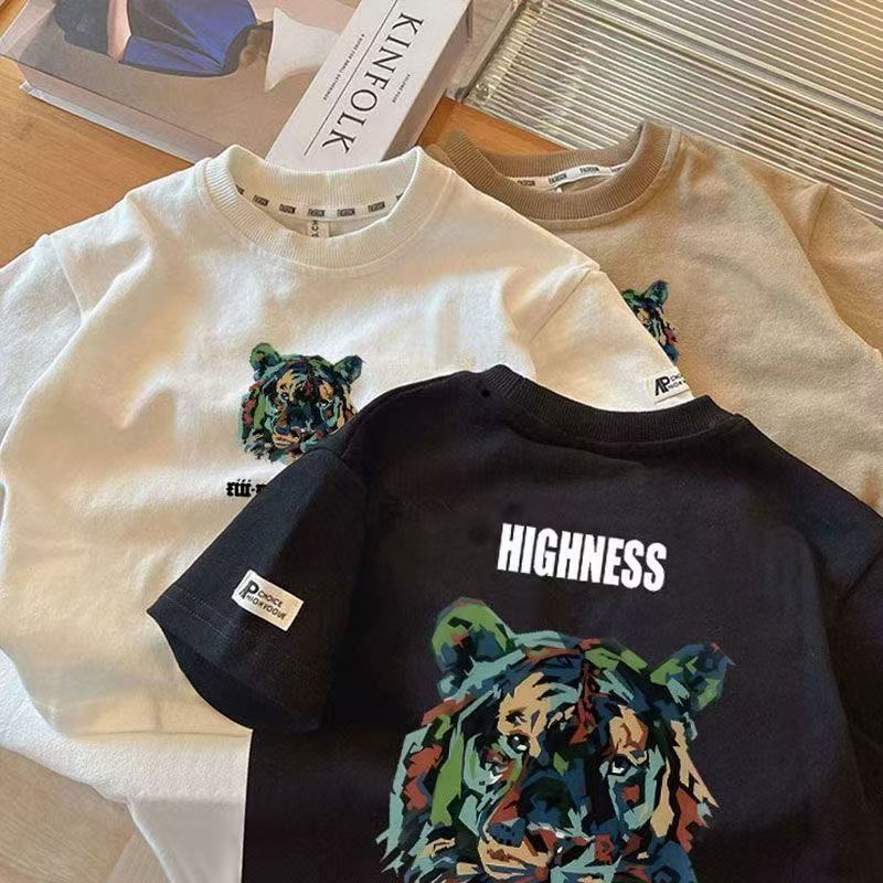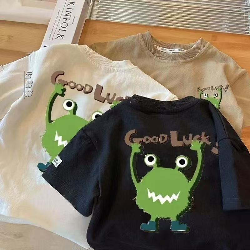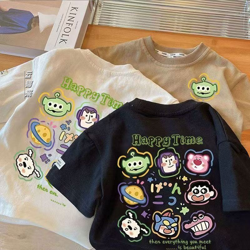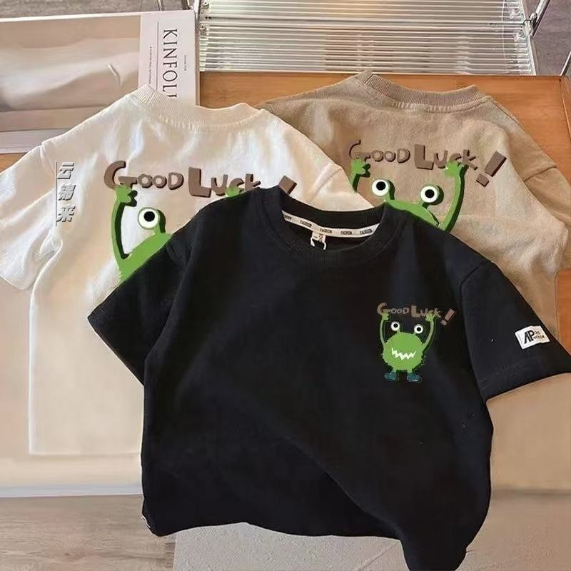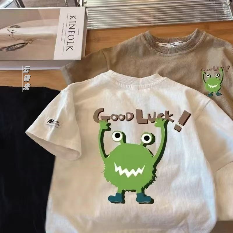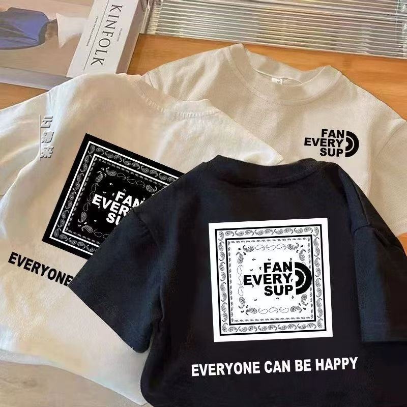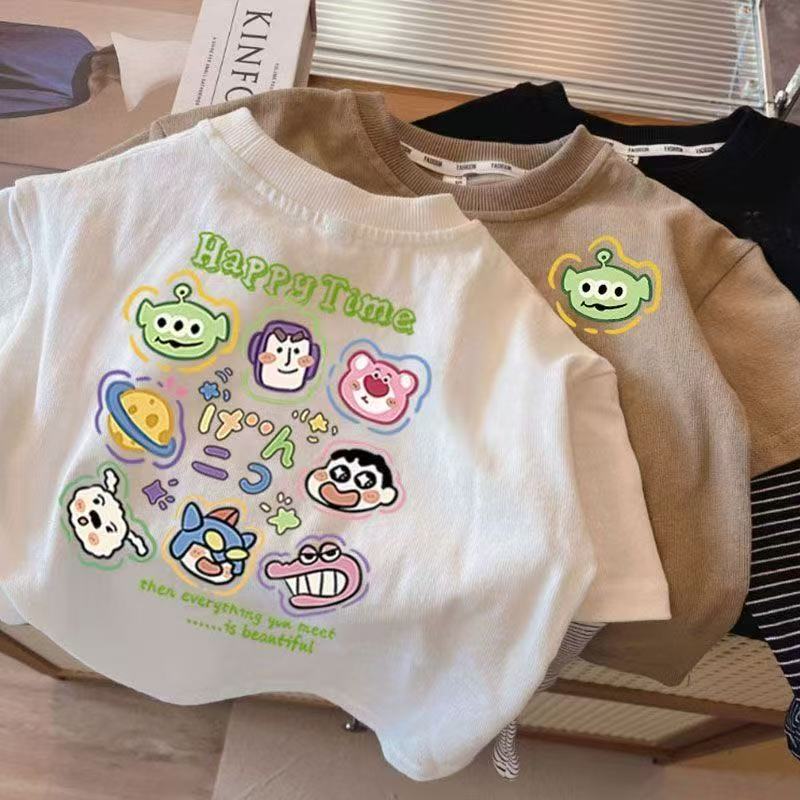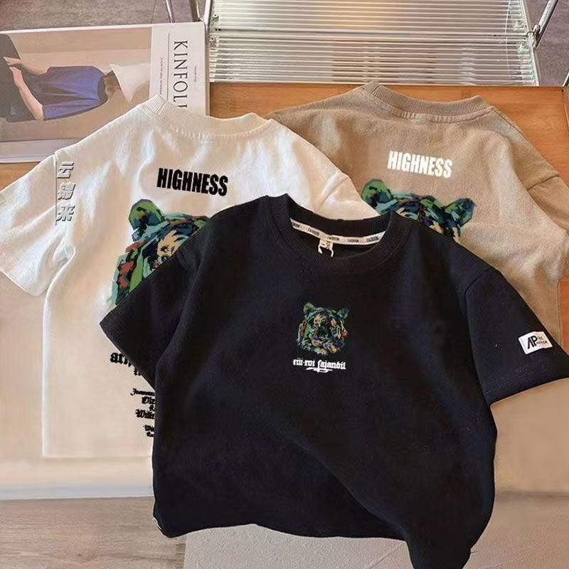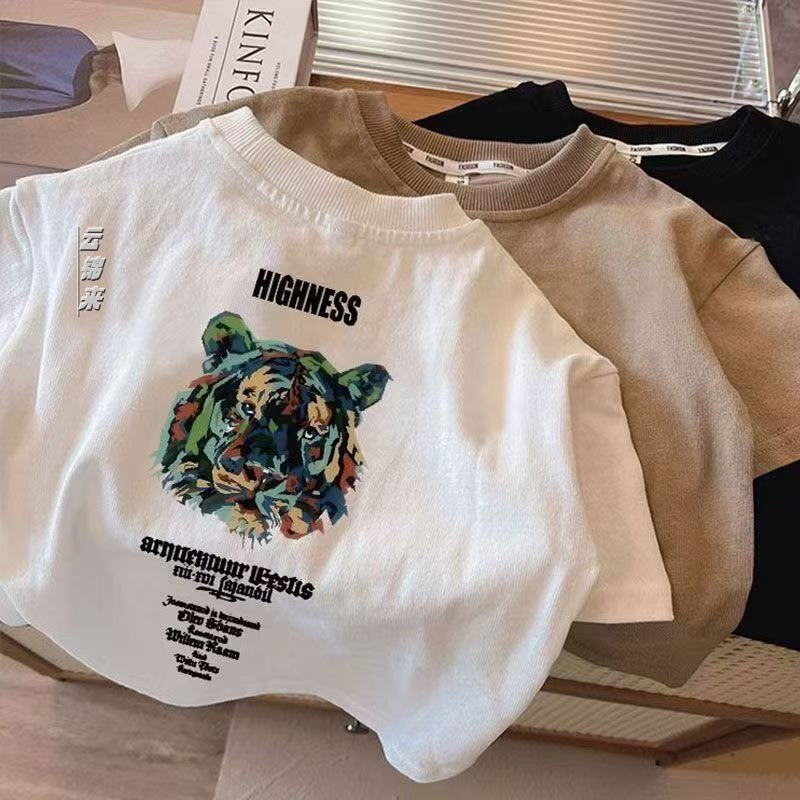 100% 면 아동용 반팔 티셔츠 여름 신작 아동복 아동용 반팔 상의 중소형 아동용 신선하고 트렌디한 쿨 티셔츠