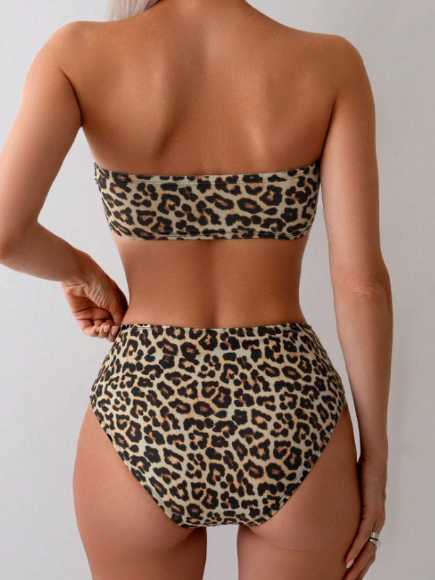 2025 유럽 및 미국 신상 섹시한 여성용 수영복 프린트 레오파드 무늬 튜브탑 비키니 하이웨이스트 비키니