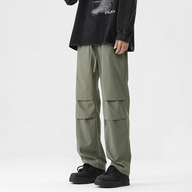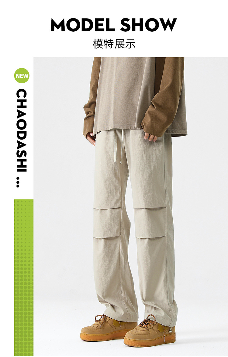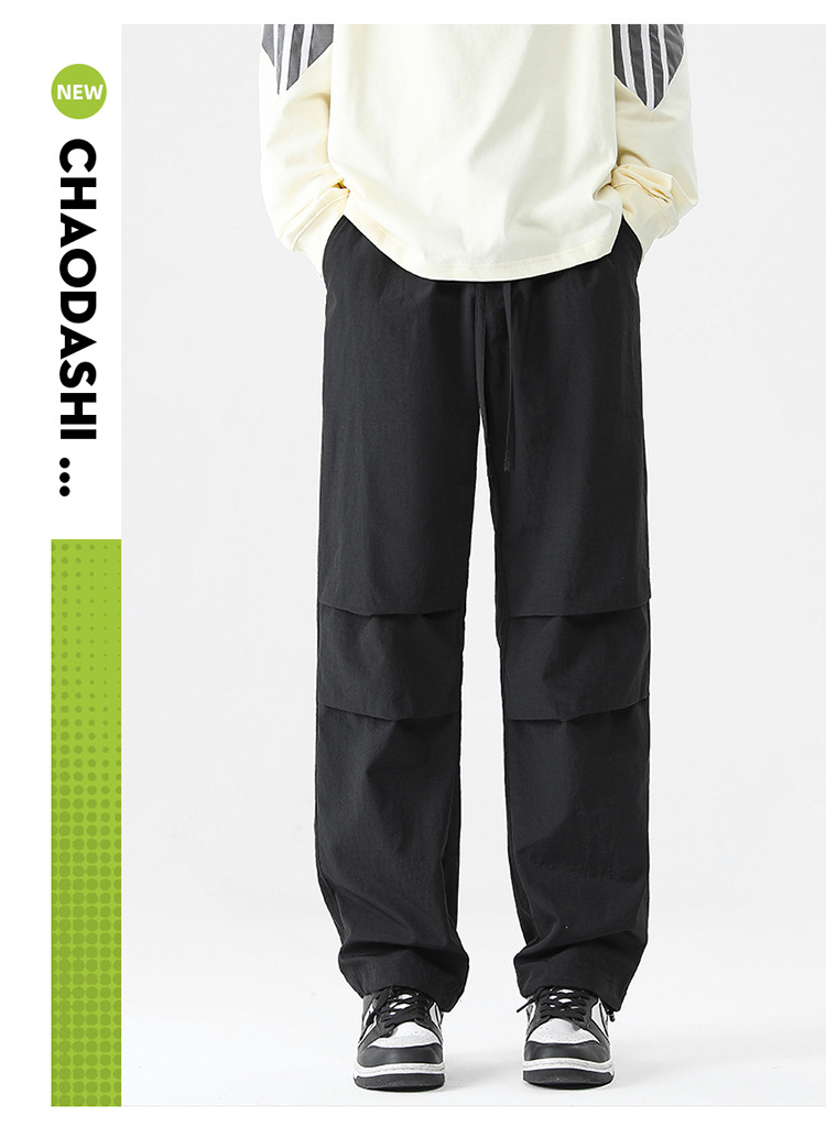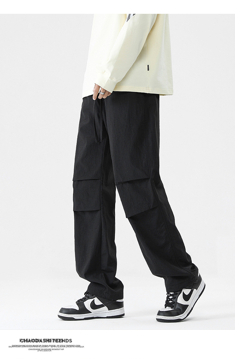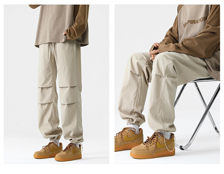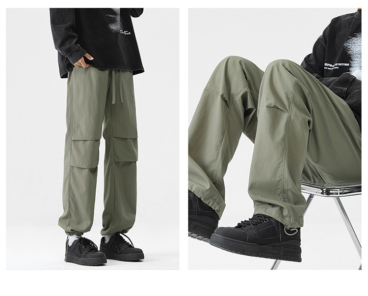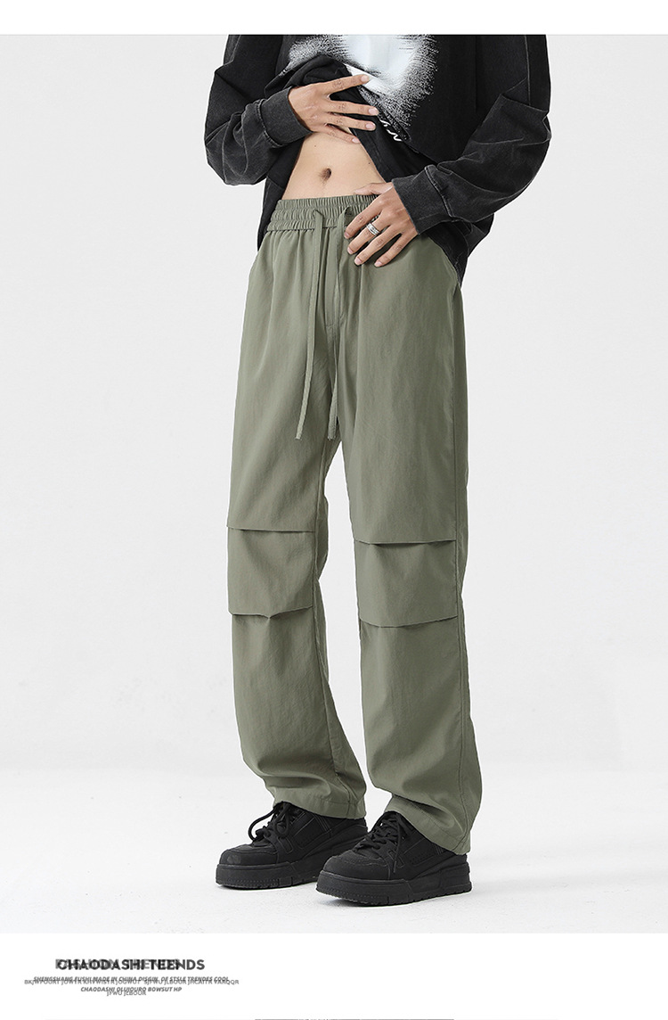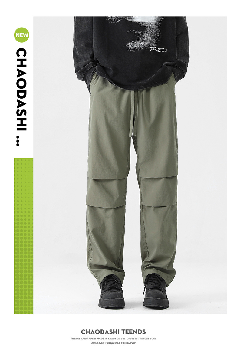 아메리칸 스타일 오버홀 남자 봄과 가을 방수 방풍 충전 바지 두꺼운 남자 캐주얼 스트레이트 4 시즌 느슨한 와이드 레그 바지스토어 가기