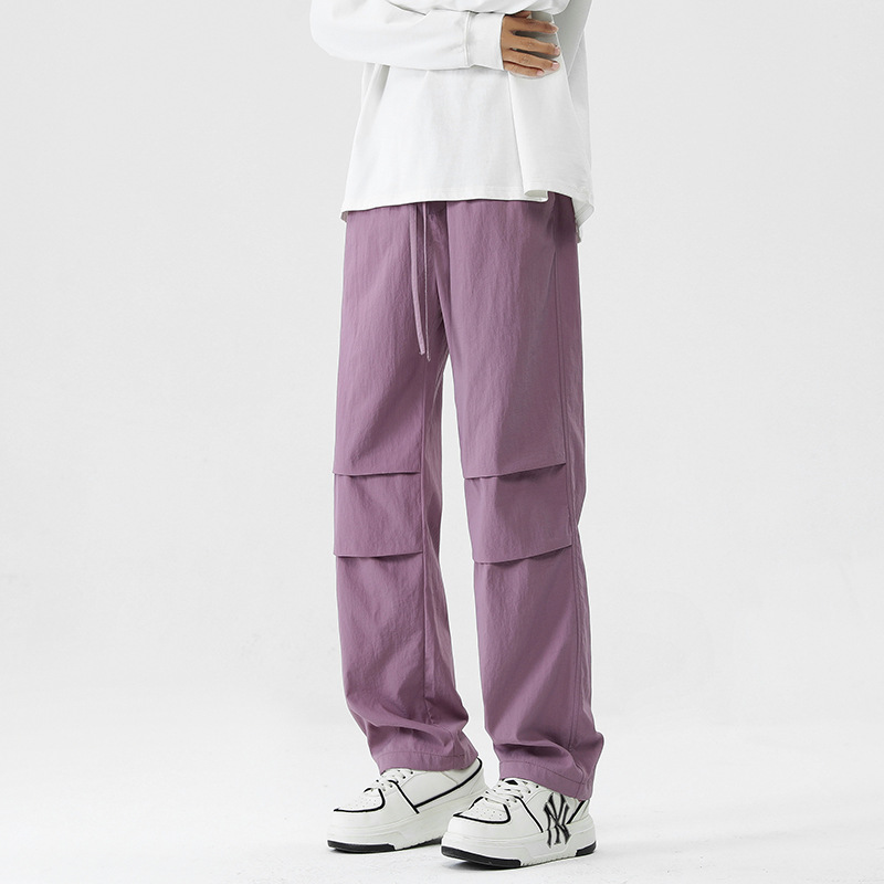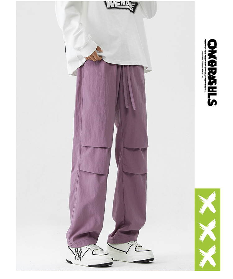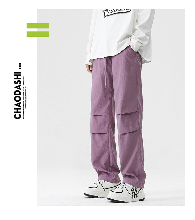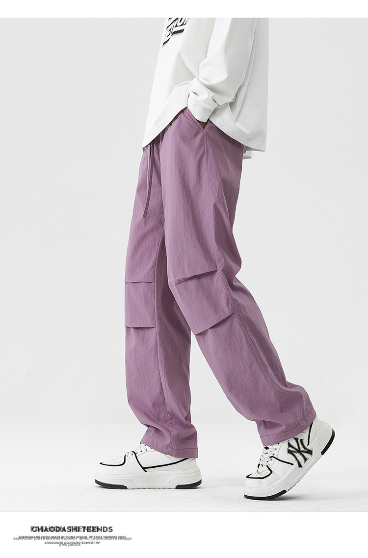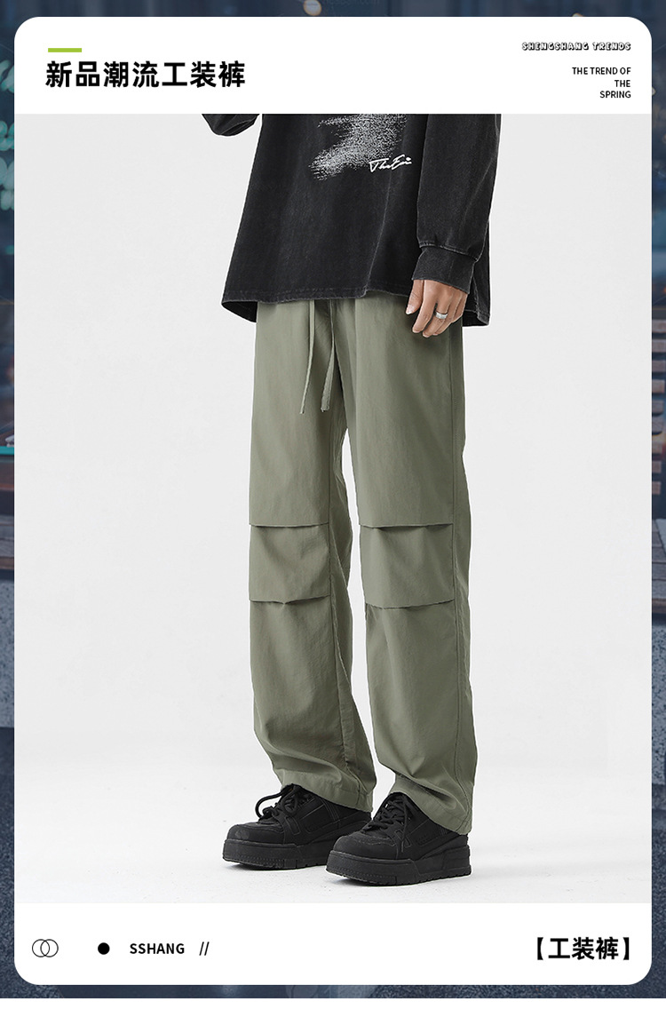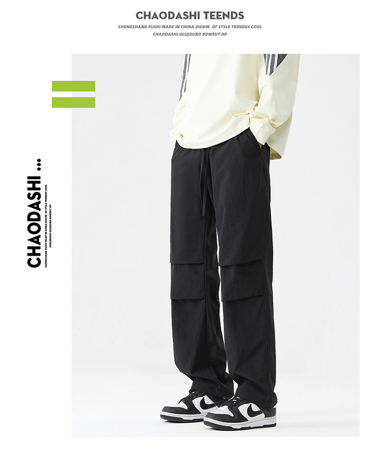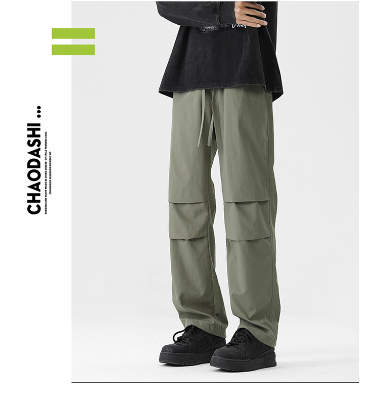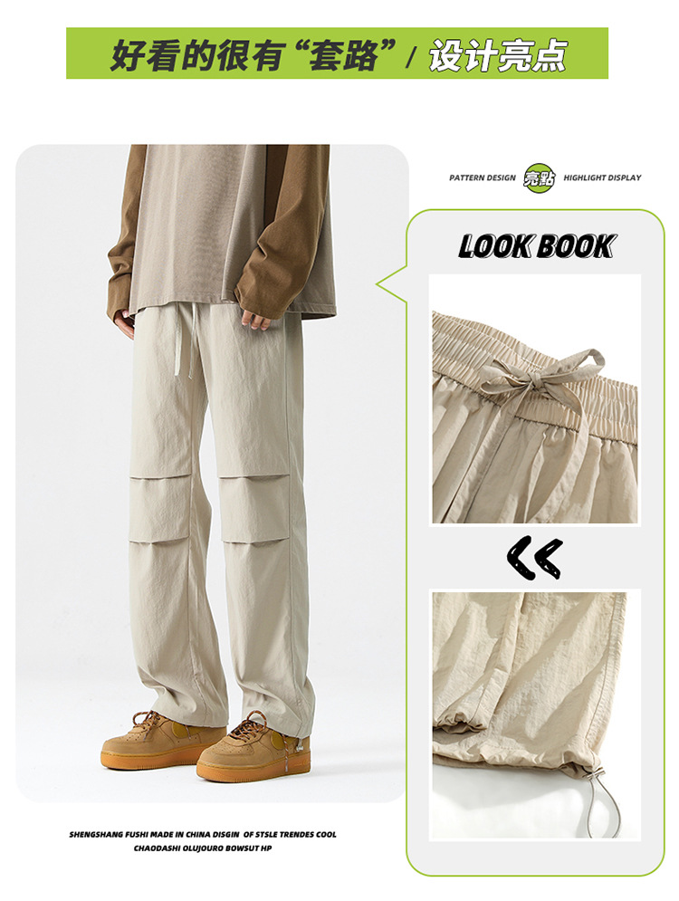 아메리칸 스타일 오버홀 남자 봄과 가을 방수 방풍 충전 바지 두꺼운 남자 캐주얼 스트레이트 4 시즌 느슨한 와이드 레그 바지스토어 가기