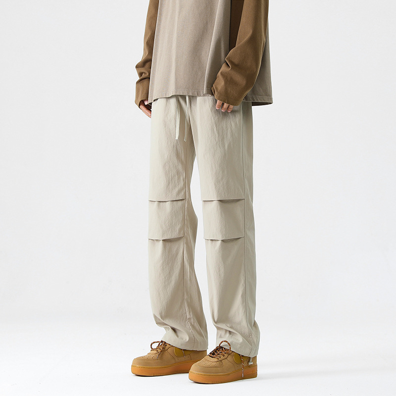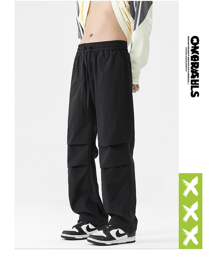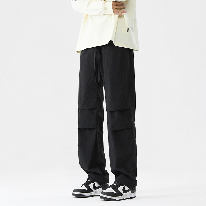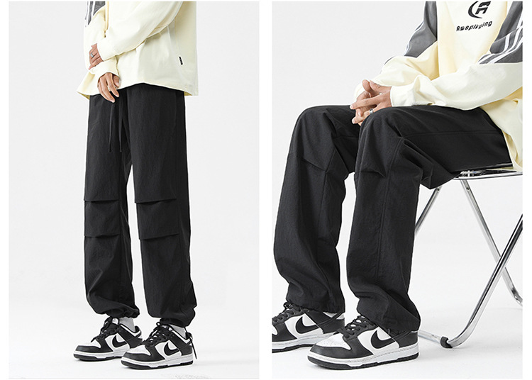아메리칸 스타일 오버홀 남자 봄과 가을 방수 방풍 충전 바지 두꺼운 남자 캐주얼 스트레이트 4 시즌 느슨한 와이드 레그 바지