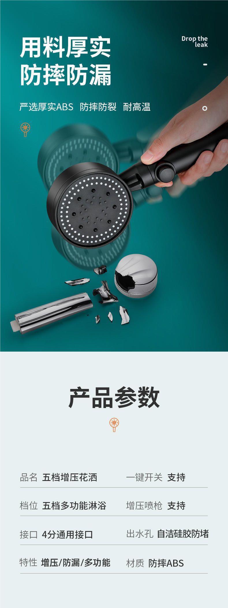 스위치가 있는 5단 막힘 방지 가압 대형 구멍 두꺼운 구멍 샤워기 욕조 온수기 노즐 샤워기스토어 가기