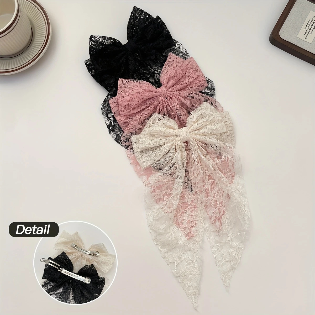 2025 새로운 크로스 보더 헤어핀 레이스 자수 활 리본 봄 클립 더블 레이어 달콤한 헤어 액세서리 헤어핀 헤드웨어