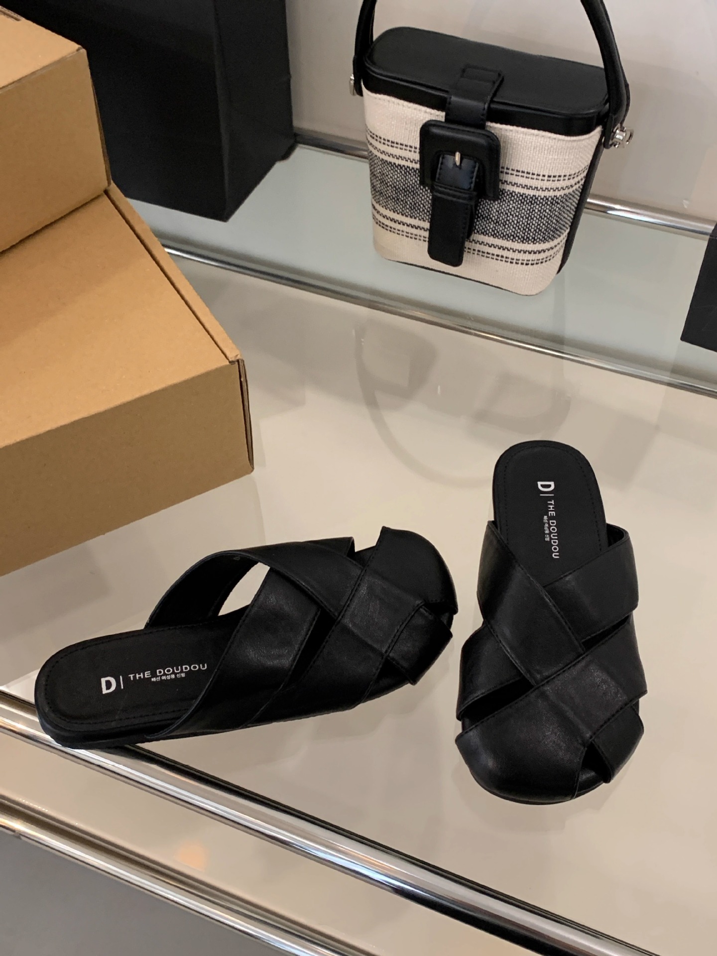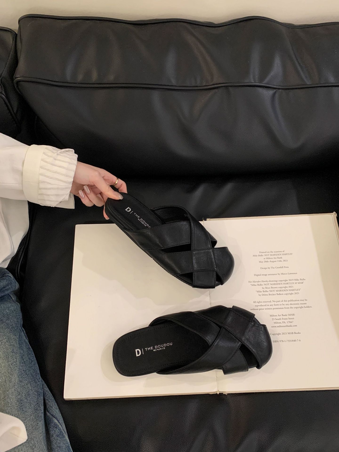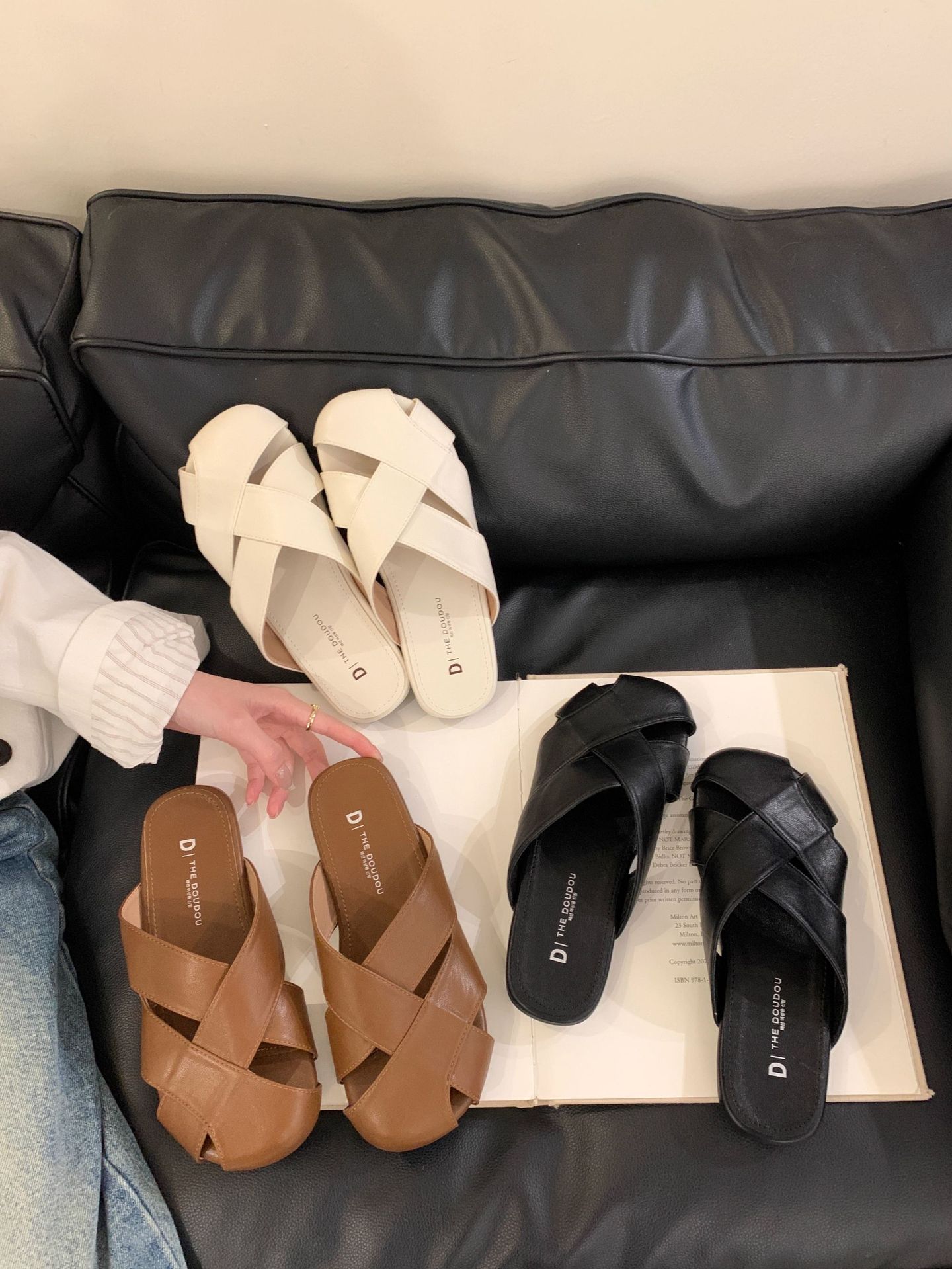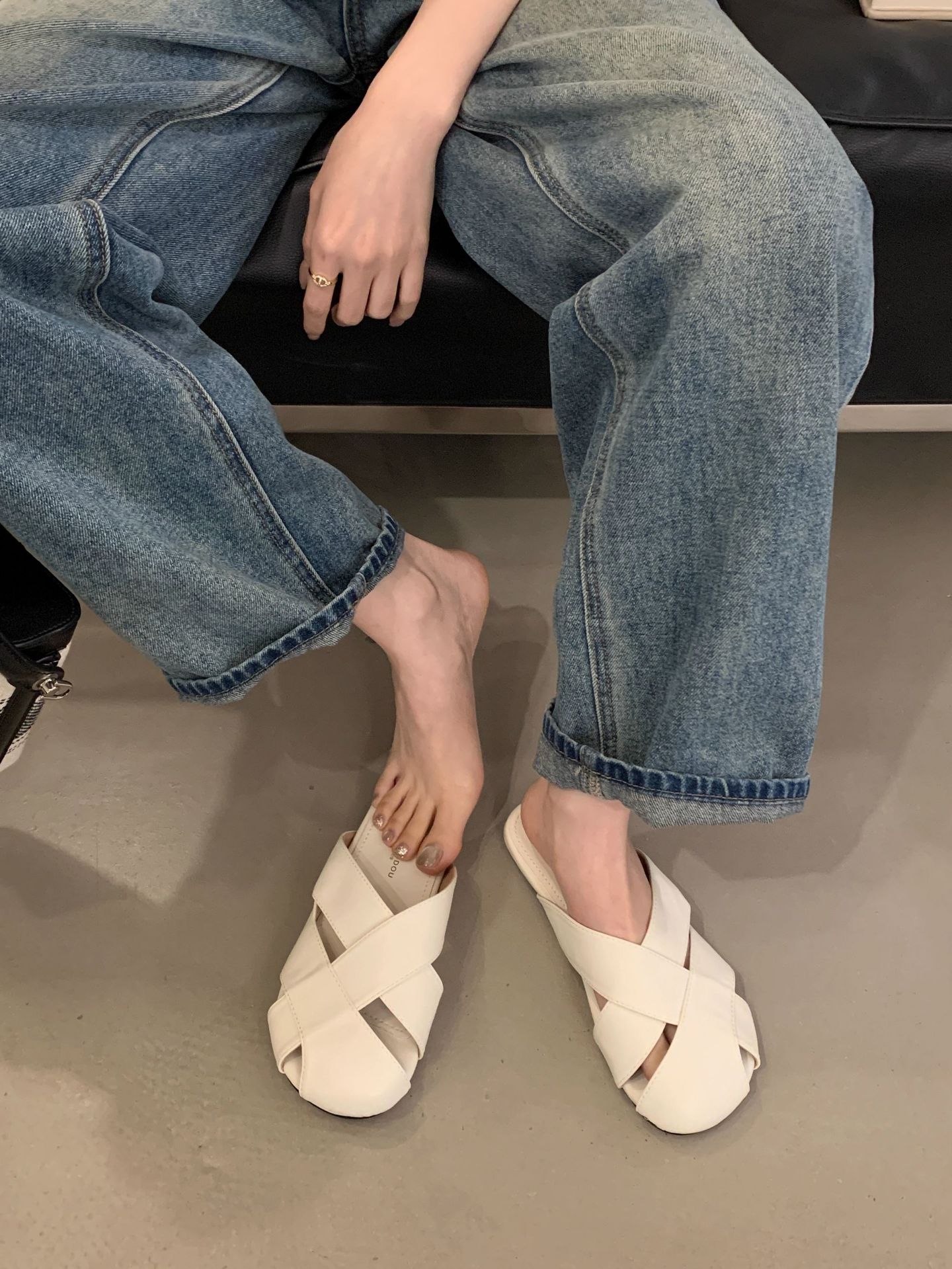 레트로 플랫 바닥 발가락 반 슬리퍼 여성 신발 겉옷 2025 새로운 봄, 여름 짠 게으른 샌들 도매스토어 가기