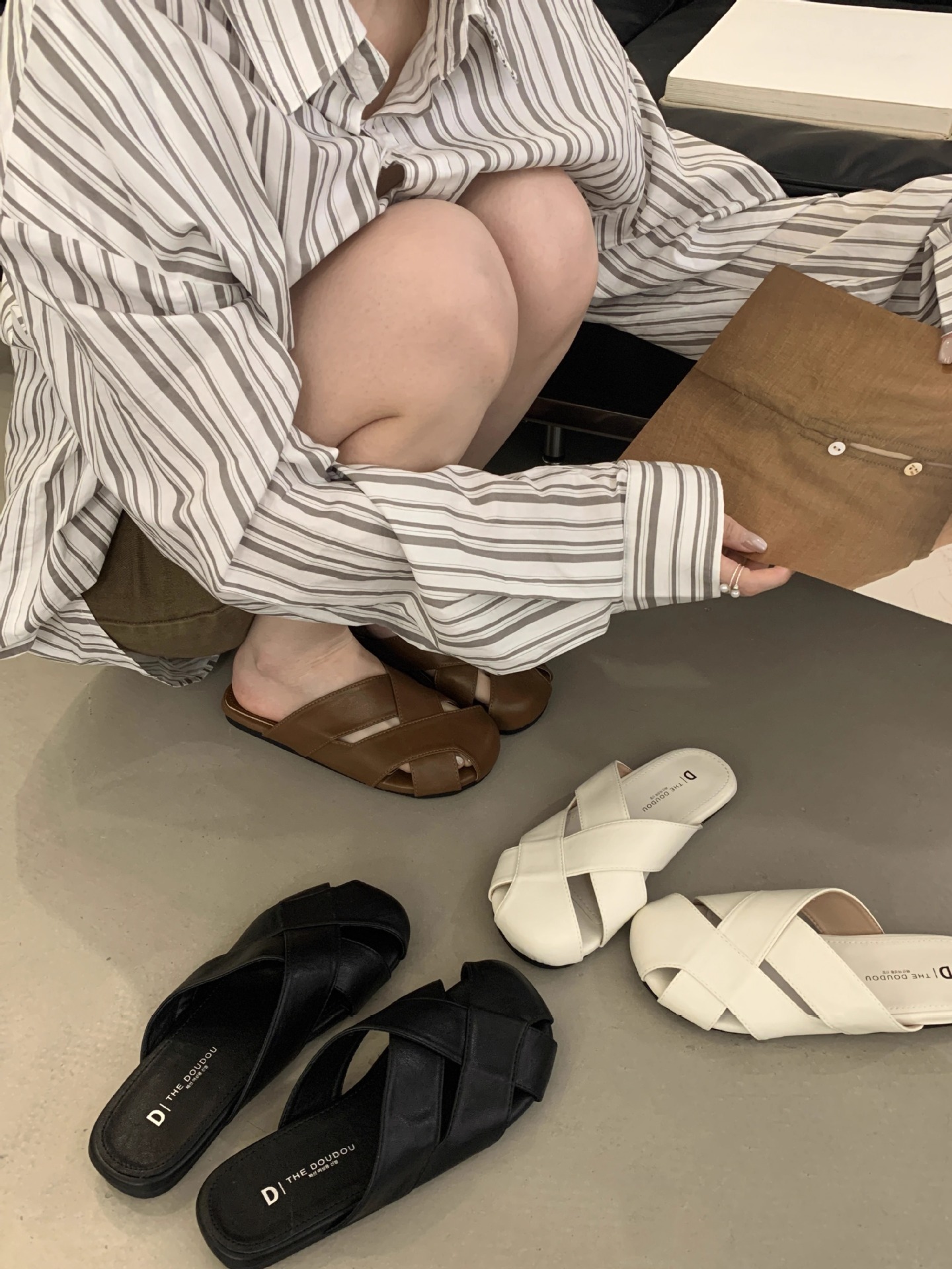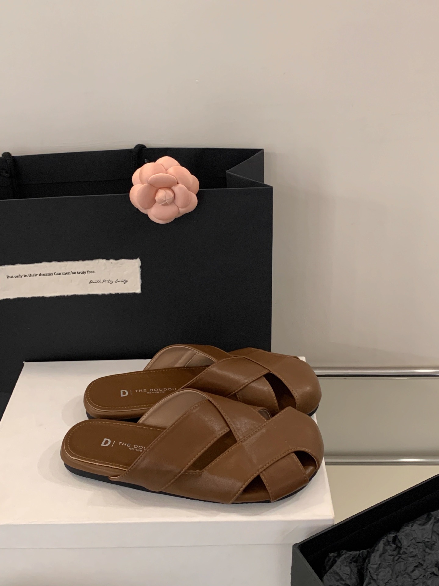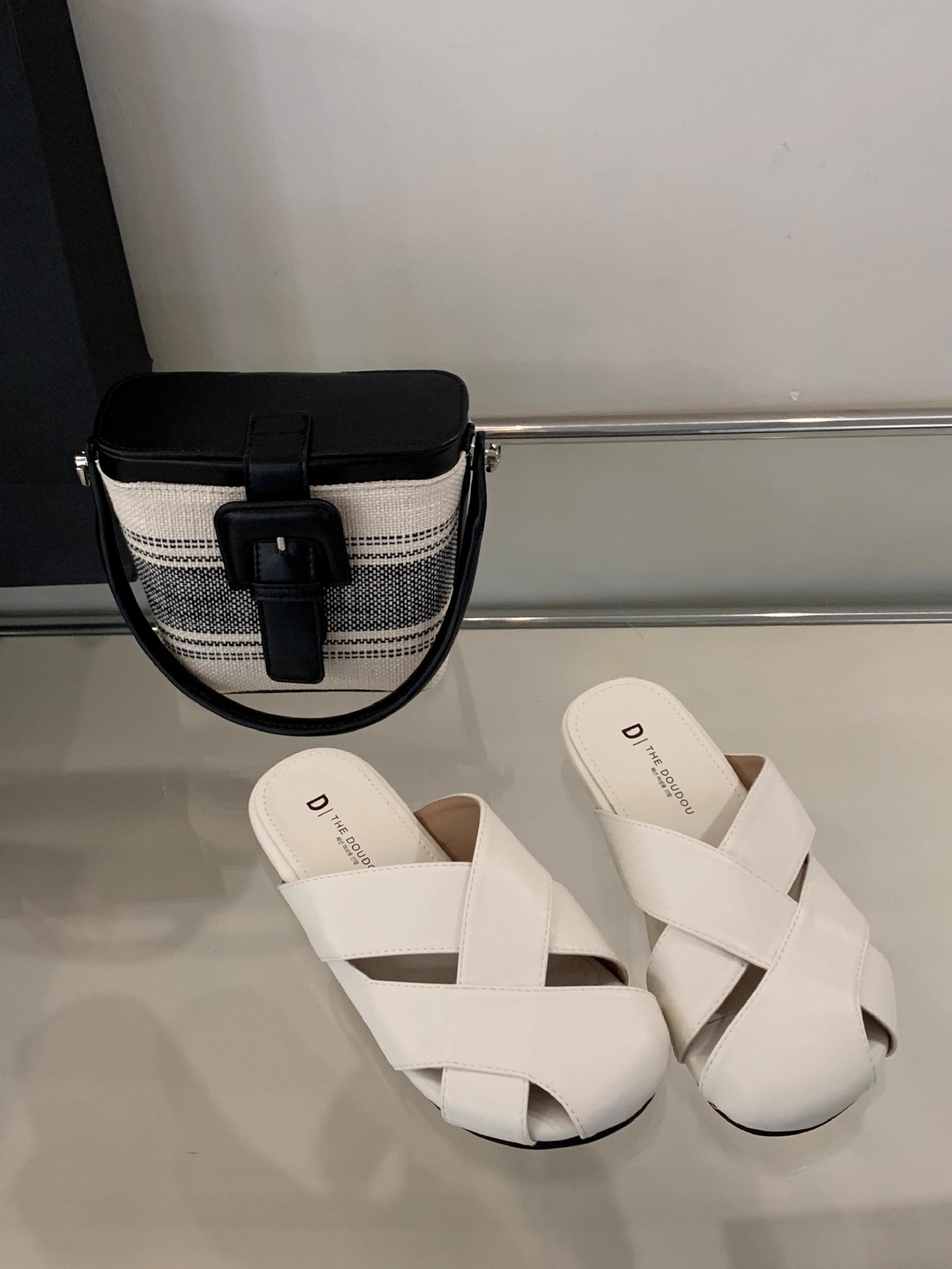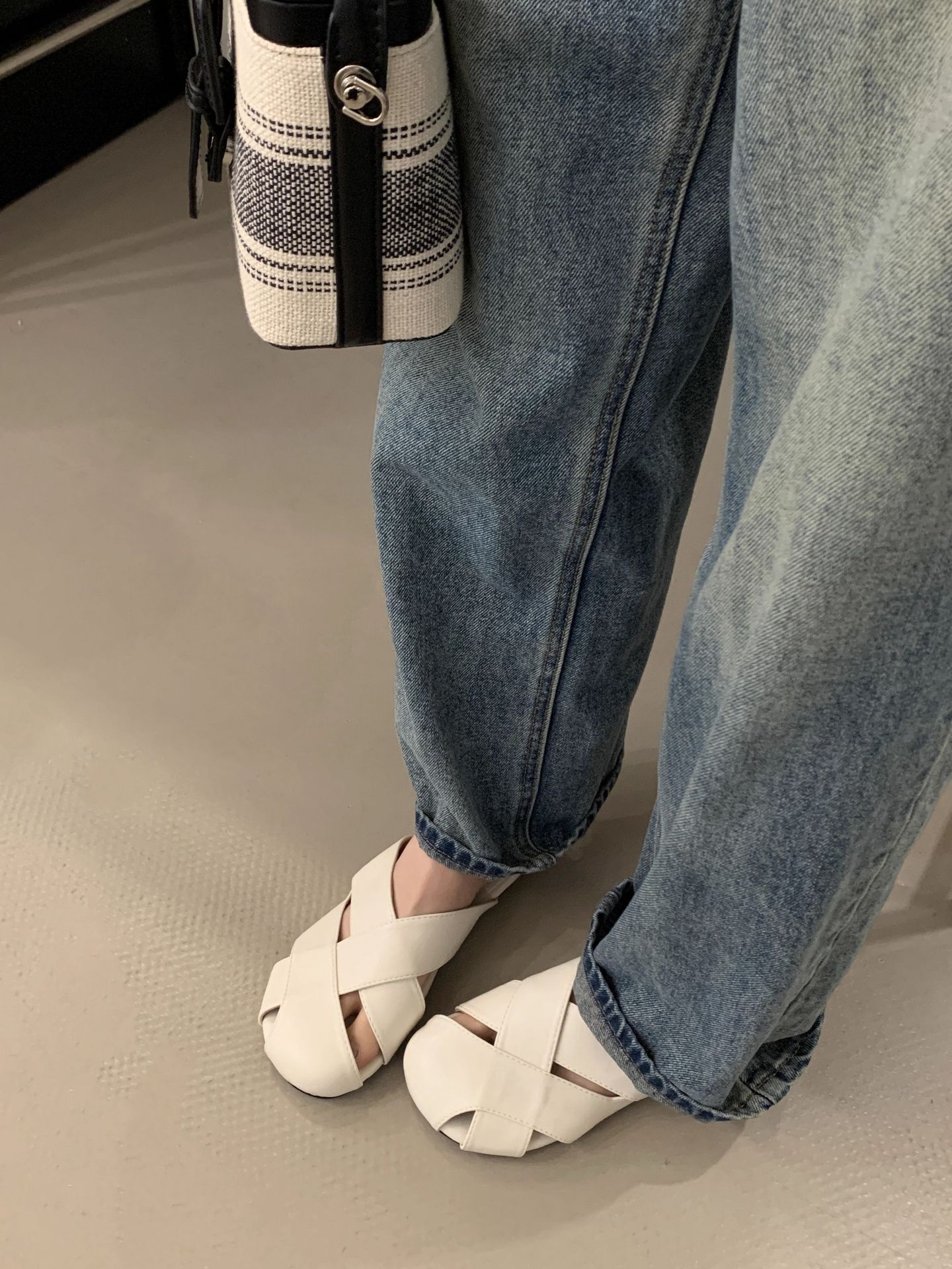 레트로 플랫 바닥 발가락 반 슬리퍼 여성 신발 겉옷 2025 새로운 봄, 여름 짠 게으른 샌들 도매스토어 가기