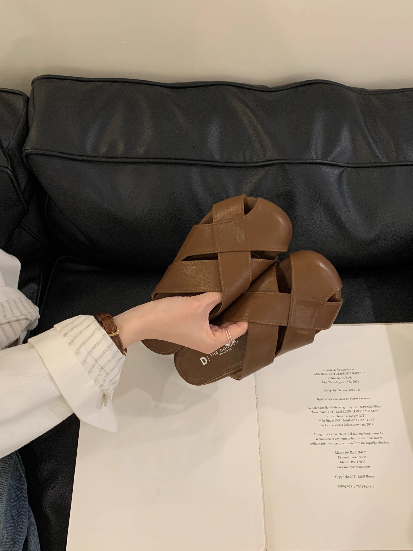 레트로 플랫 바닥 발가락 반 슬리퍼 여성 신발 겉옷 2025 새로운 봄, 여름 짠 게으른 샌들 도매