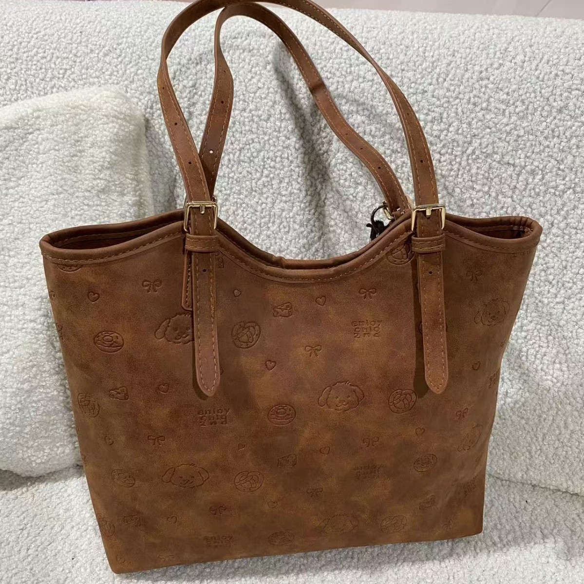 빵 강아지 해피 파티 토트 백 여성 대용량 다크 브라운 휴대용 어깨 가방 2025 새로운 스타일