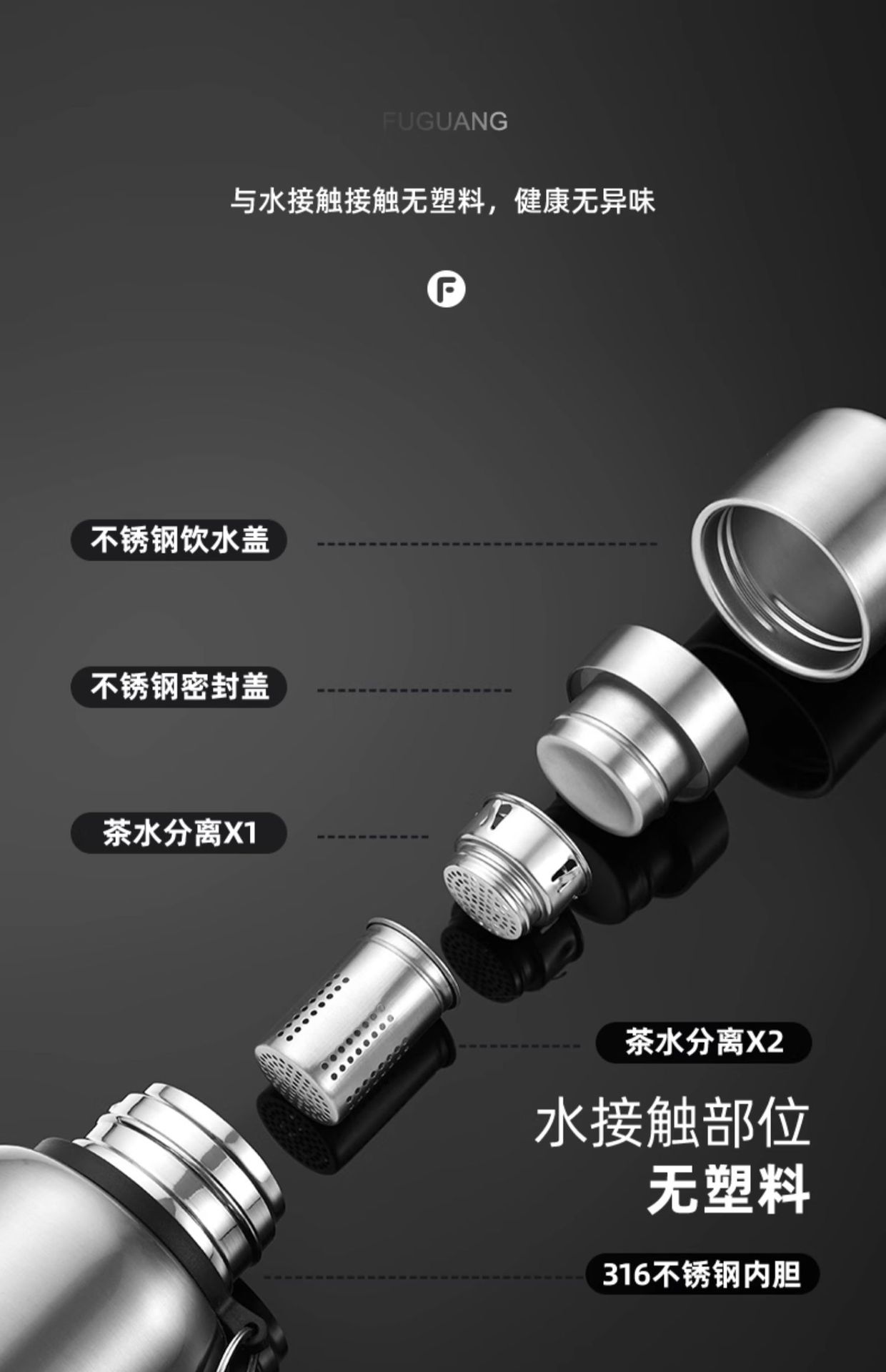 Fuguang 올 스틸 보온병 컵 남자 316 스테인레스 스틸 대용량 물병 컵 어린이 야외 휴대용 차 컵 도매