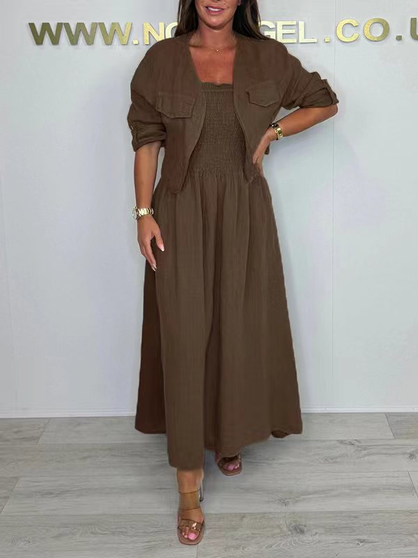 2025 아마존 롱 스커트 크로스보더 신작 유럽과 미국의 인기 여성 드레스 짧은 가디건-슬립 스커트 2피스 세트스토어 가기