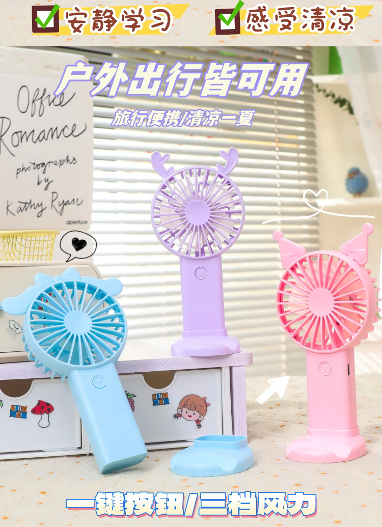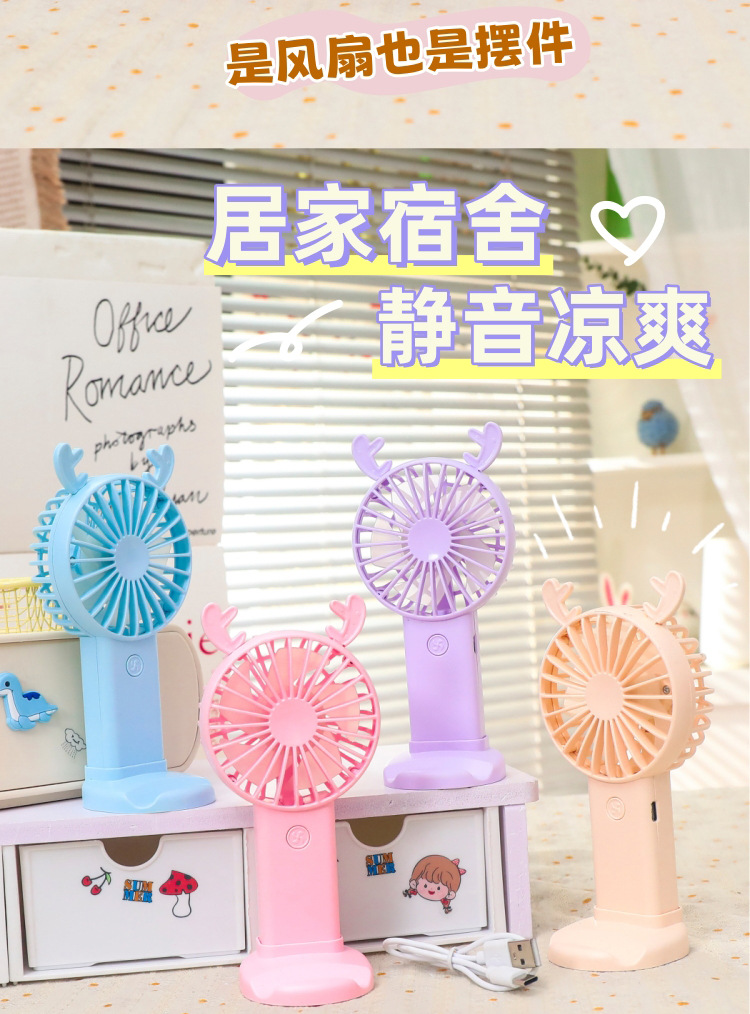 간단한 솔리드 컬러 3 속도 조절 대형 바람 휴대용 충전 휴대용 스탠드 베이스 데스크탑 작은 팬스토어 가기