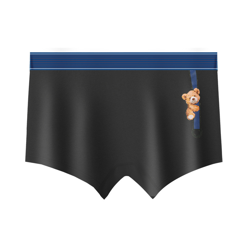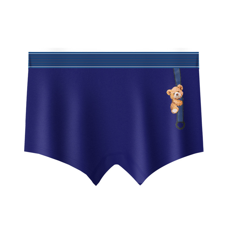 남성 속옷 순면 통기성 청소년 스포츠 복서 팬티 트렌디 남성 곰 프린트 복서 팬티 중간 허리 코튼 반바지