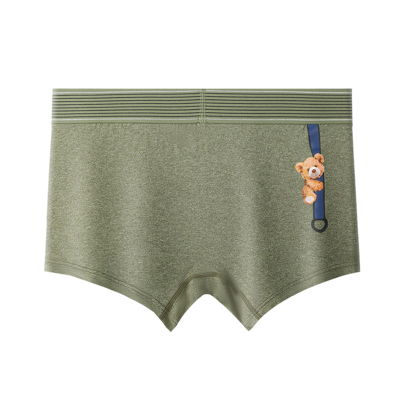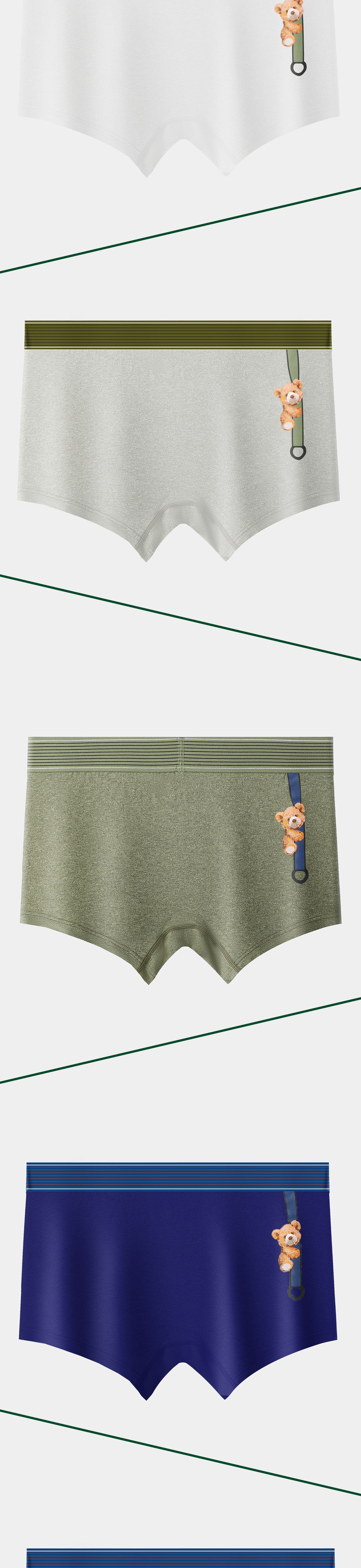 남성 속옷 순면 통기성 청소년 스포츠 복서 팬티 트렌디 남성 곰 프린트 복서 팬티 중간 허리 코튼 반바지스토어 가기