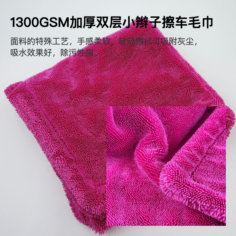 1300GS 두꺼운 양면 브레이드 천 자동차 건조 수건 마이크로 화이버 더블 레이어 브레이드 세차 수건스토어 가기