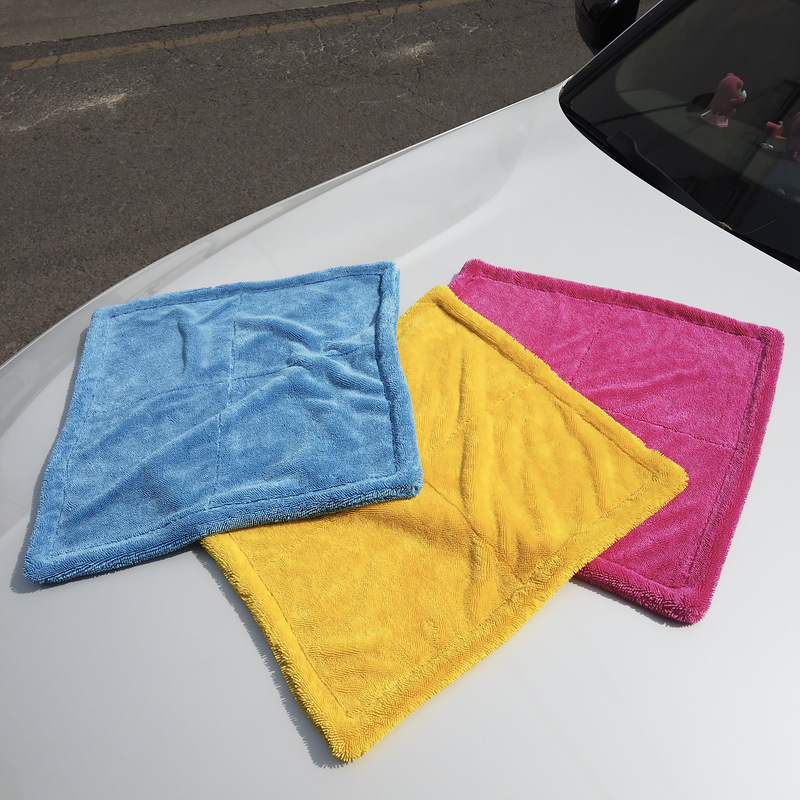 1300GS 두꺼운 양면 브레이드 천 자동차 건조 수건 마이크로 화이버 더블 레이어 브레이드 세차 수건