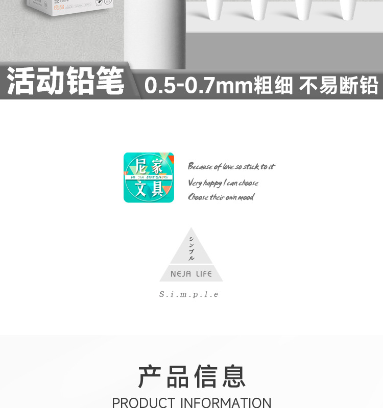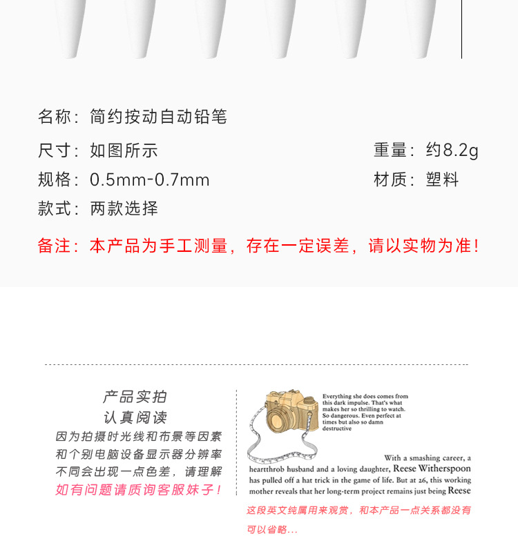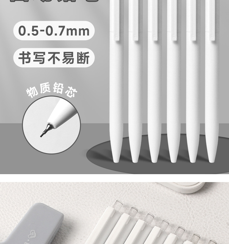 Tianzhuo Liangpin 심플한 순백색 무인쇄 스타일 샤프펜슬 멋진 학생용 0.5/0.7 자동연필 무료스토어 가기